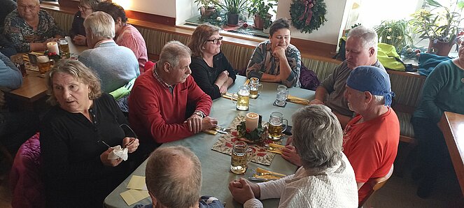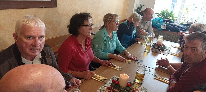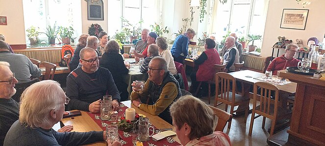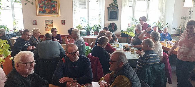 Gestärkt wanderten wir weiter um die Runde zu vollenden wo wir dann beim Kirchenwirt unser gemeinsames Mittagessen mit den Nichtwandernden Kameraden "den es kamen noch ca 20 Personen dazu" ausgiebieg geniessen durften.