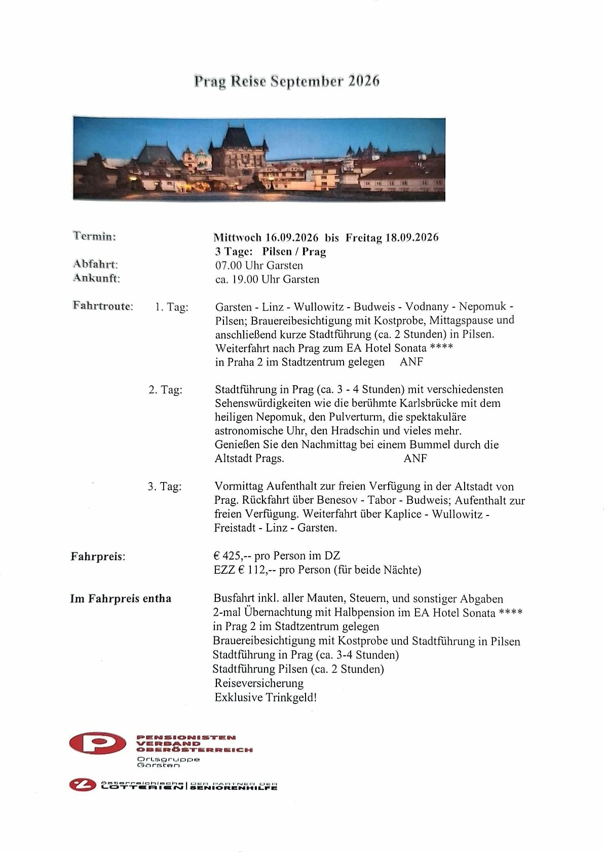 Unsere mehrtägige Reise findet heuer nach Prag statt.