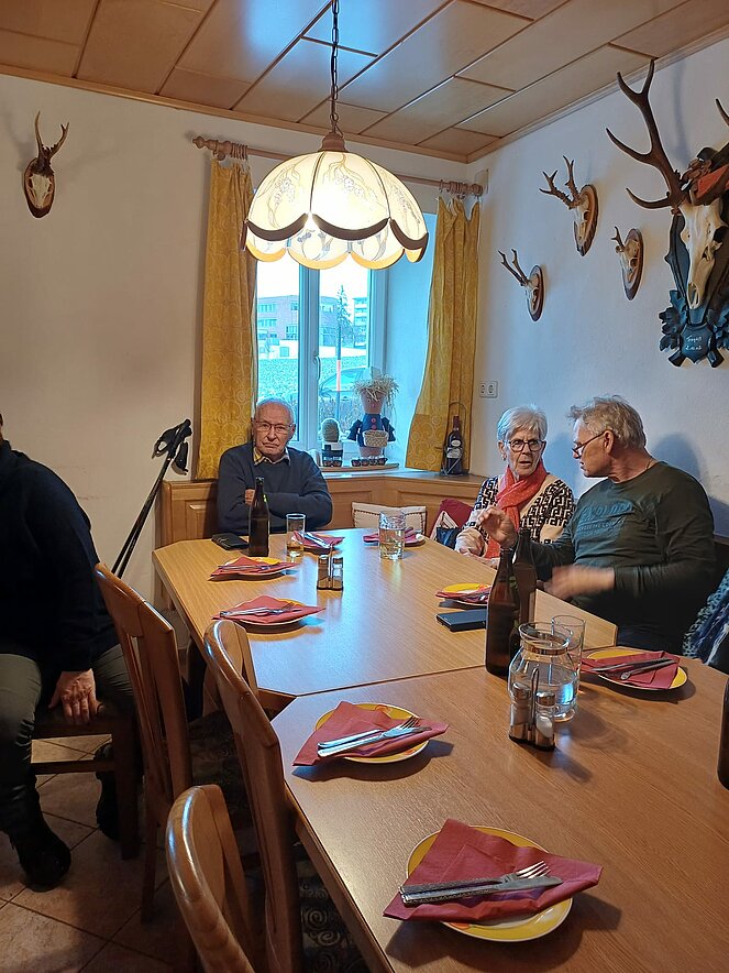 Aufgeteilt haben sie sich in zwei ca. gleich große Gruppen, wobei die etwas geübteren und sportlicheren Wanderer eine etwas längere und anspruchsvollere Route wählten. Man traf sich dann wieder beim Zollner, wo alle die verbrauchten Kalorien mit einer ausgezeichneten Jause nachfüllten. Danach haben wir bei gemütlichem Zusammensitzen mit guter Unterhaltung und viel Spaß unsere letzte Aktivität im Jahr 2025 ausklingen lassen.
