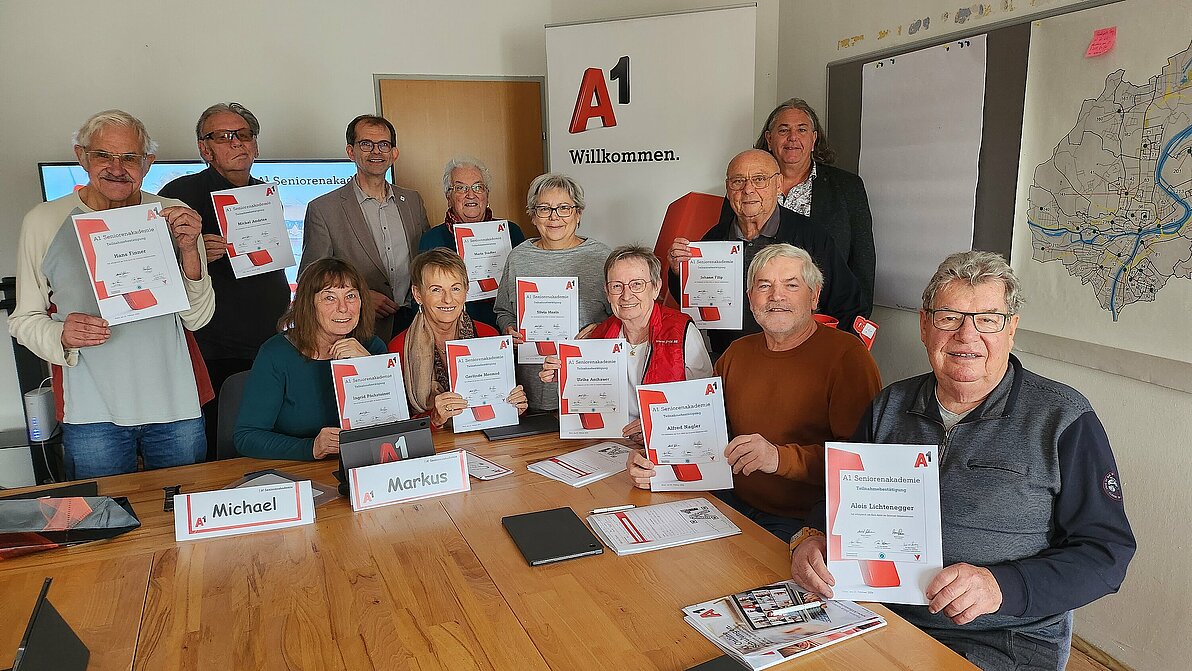 Zehn Teilnehmerinnen und Teilnehmer absolvierten den kostenlosen Kurs „Aktiv im Internet“ von der A1 Seniorenakademie