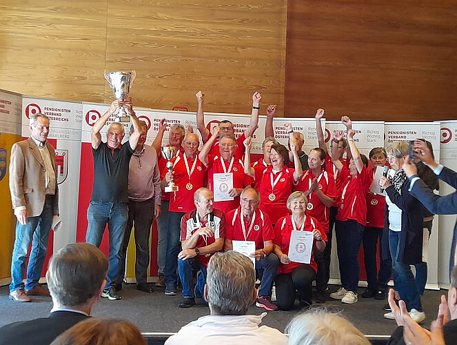 In der Einzelwertung eroberte Johann Kreindl aus Luftenberg auch den zweiten Gesamtplatz bei den Herren. Zu den Gratulanten der erfolgreichen Sportler*innen zählten PVÖ-Präsident Peter Kostelka, PVÖ-Generalsekretär Andreas Wohlmuth und PVOÖ-Landessportreferent Erich Hackl.