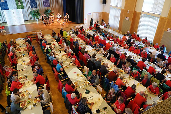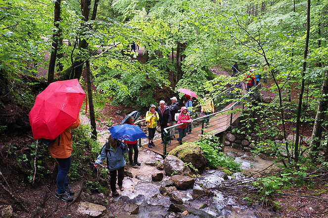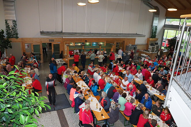 Der Wendepunkt erfolgte beim romantisch, idyllischen Kremsursprung. Von dort ging es zurück in die Veranstaltungshalle des Sportparks Micheldorf, wo sich die Wanderer bestens verpflegten und in der die Ehrungen der größten Gruppe aus Linz-Froschberg mit 46 TeilnehmerInnen und der am weitesten angereisten Gruppe (115 km) aus Ulrichsberg-Klaffer-Schwarzenberg stattfanden.