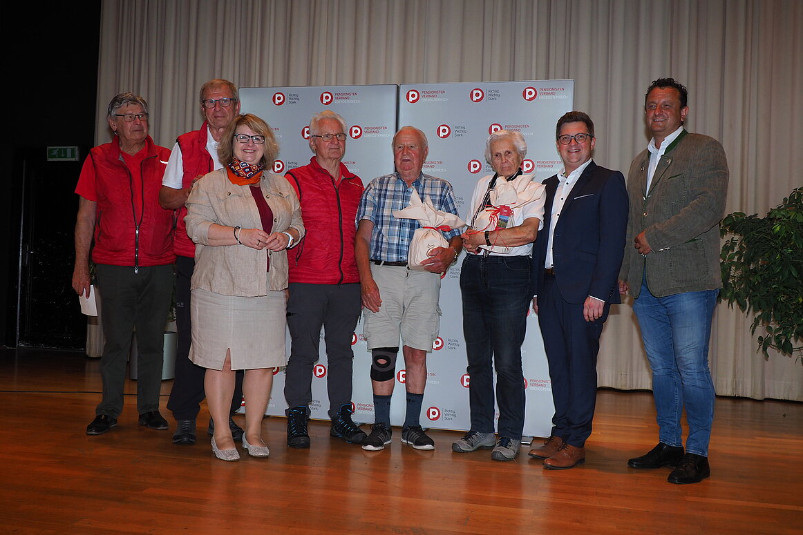 Alois Edlauer aus Aschach an der Steyr und Elfriede Hüthmair aus Laakirchen, beide 90 Jahre jung, erhielten als älteste Teilnehmer von Landespräsident Konsulent Heinz Hillinger und Landessportreferent Konsulent Johannes Nistelberger einen Sonderpreis – ein sogenanntes Bschoad Binkerl.