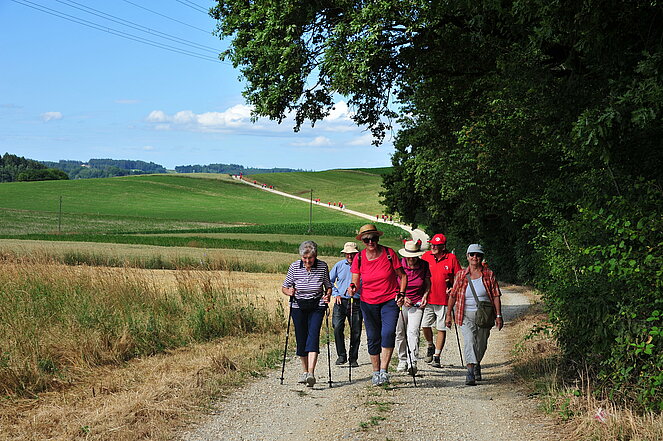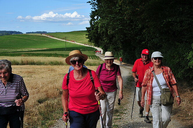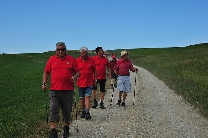 RIED/OÖ. Der Pensionistenverband Oberösterreich lud am Mittwoch, 5. Juli, zum Landes-Nordic-Walking-Wandertag. Mehr als 400 Teilnehmer nahmen die beiden Strecken über 5,8 bzw. 10,3 Kilometer in Angriff, der gemütliche Ausklang bei Musik, Speis und Trank erfolgte in der Rieder Bauernmarkthalle.