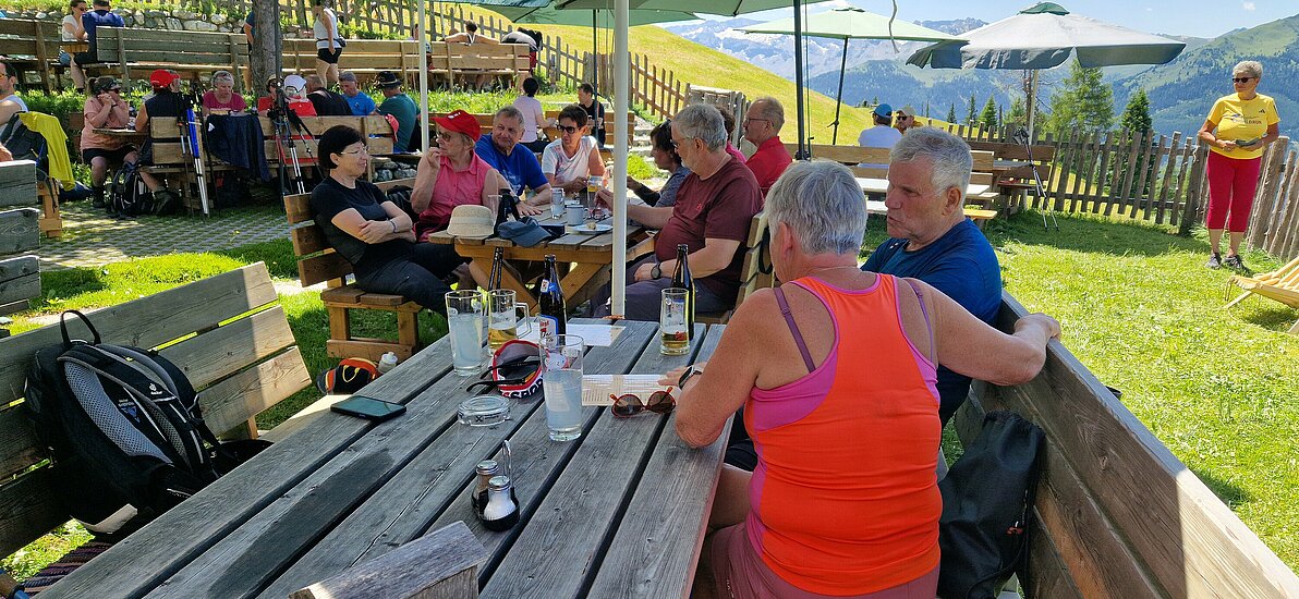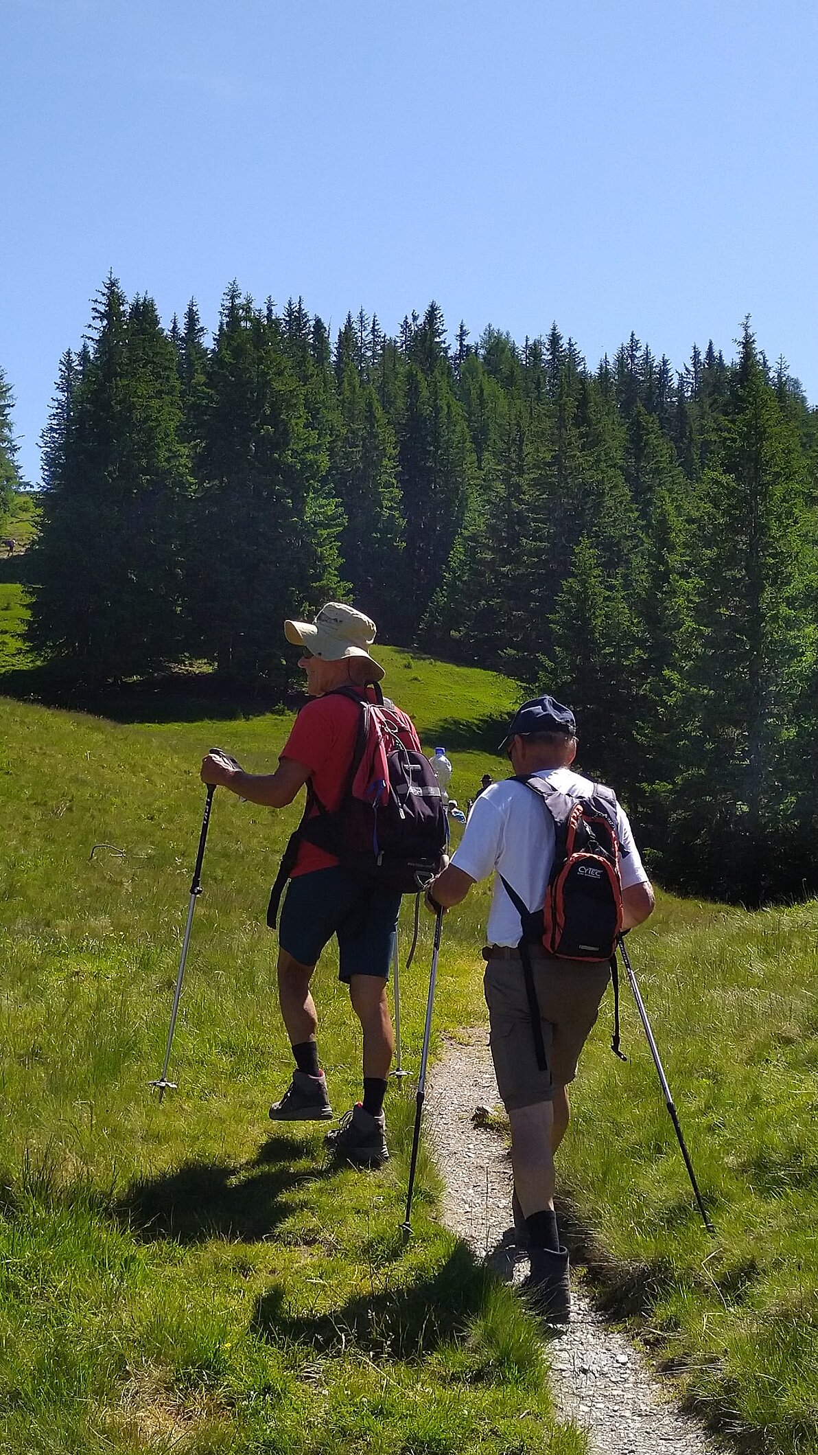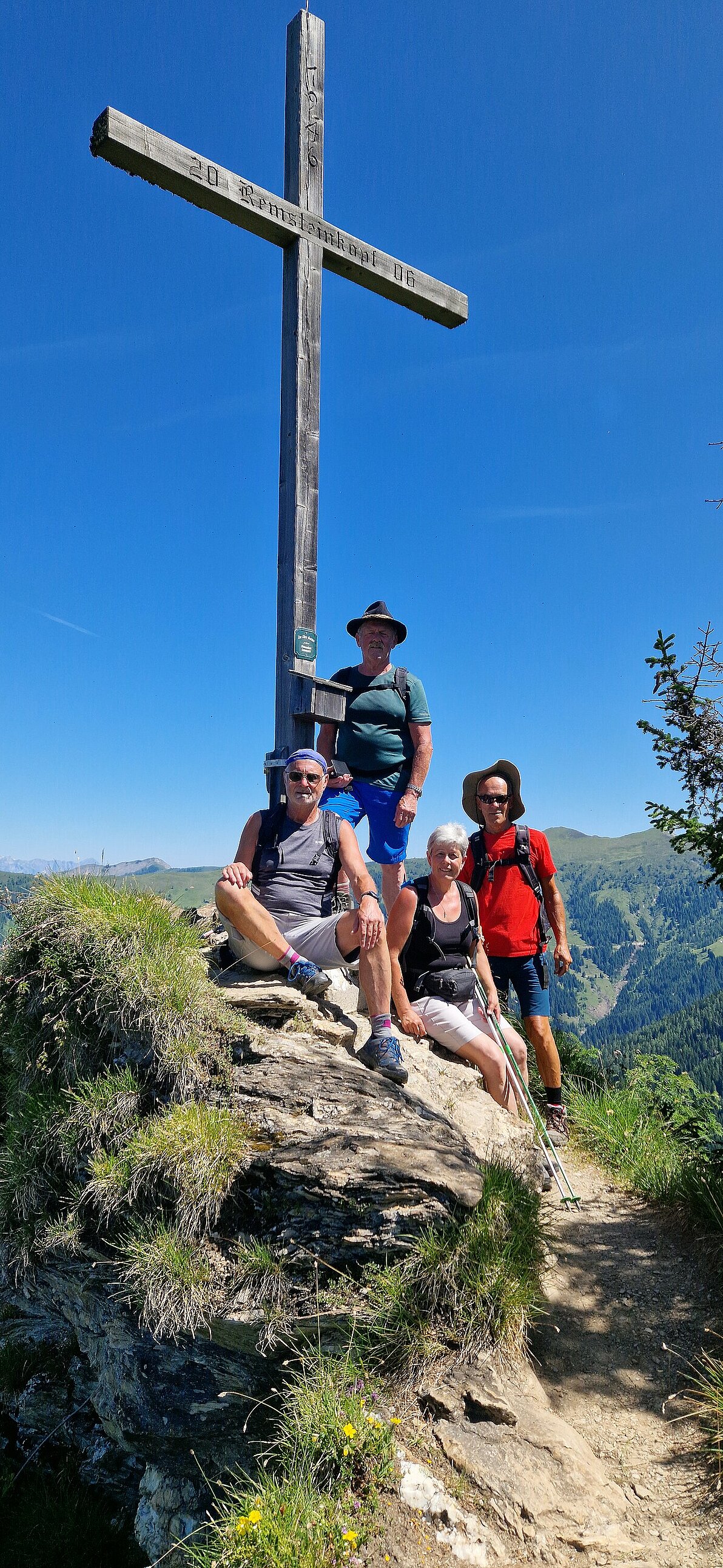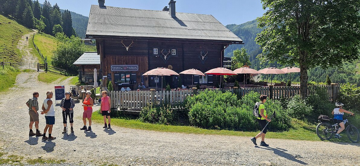 Einmal mehr wurde unsere PVÖ-Wanderreise zum absoluten Erlebnis für alle TeilnehmerInnen. Bei der 2. Auflage dieser Veranstaltung wurden bei bestem Wetter 7 neue Almen und Berghütten erwandert und natürliche entsprechend kulinarisch getestet. Die unglaubliche Bergwelt rund um Großarl brachte selbst die erfahrensten Bergfexe zum Staunen. Bereits am 1. Tag entwickelte sich eine sehr gute Gruppendynamik, die dann bei den Abendessen und den anschließenden Nachbesprechung auf der kühlen Hotelterrasse gefestigt wurde. Das Wandern in 2 Gruppen hat sich wieder bewährt und so sind alle Teilnehmer und Teilnehmerinnen auf ihre Kosten gekommen, egal ob beim gemütlichen Bergwandern oder beim zügigen Aufstieg zu diversen Gipfeln. Unter anderem wurden auch der "Schuhflicker" und das "Filzmooshörndl" bestiegen, die beide deutlich über 2000 m Seehöhe hoch sind.