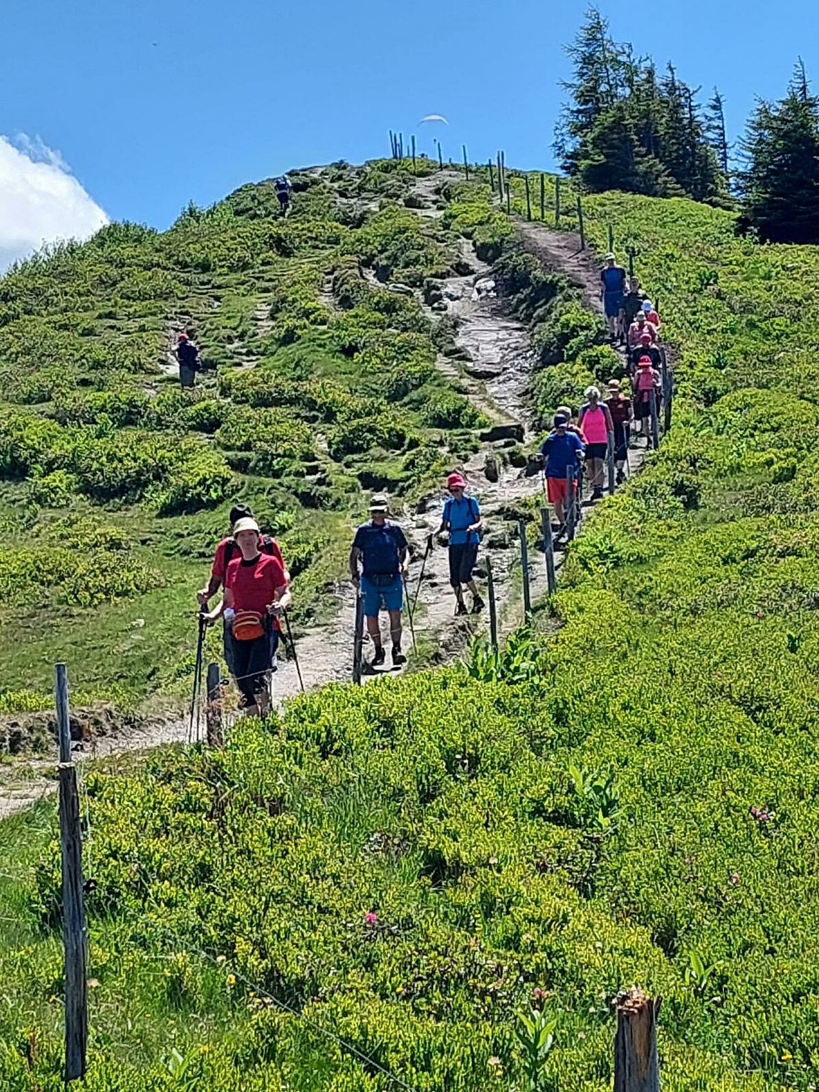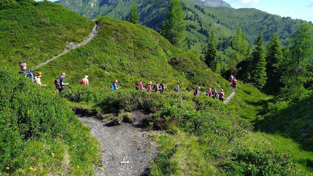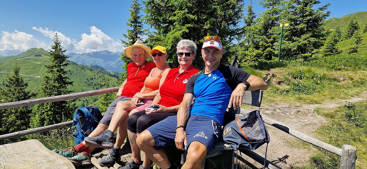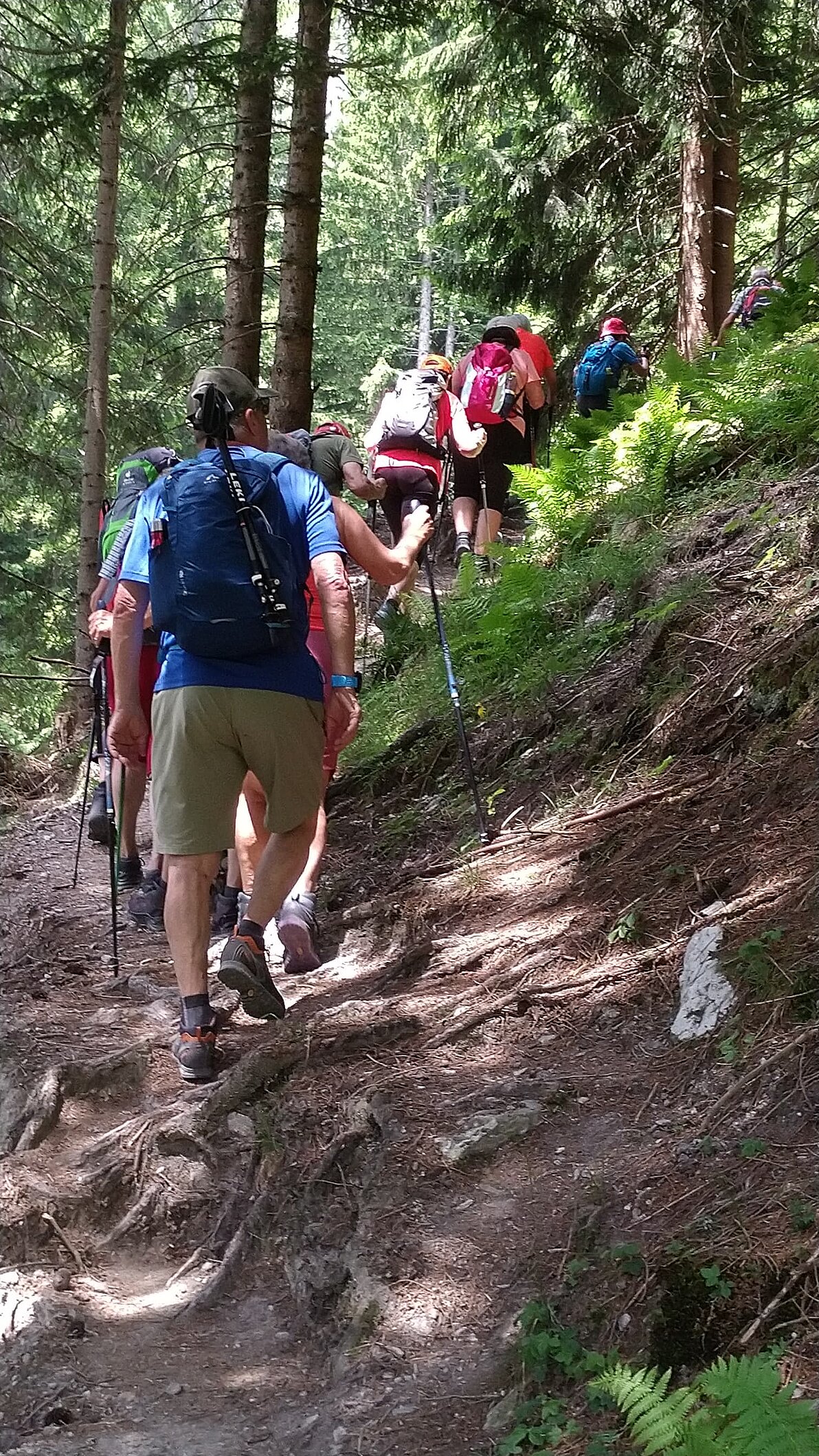 Einmal mehr wurde unsere PVÖ-Wanderreise zum absoluten Erlebnis für alle TeilnehmerInnen. Bei der 2. Auflage dieser Veranstaltung wurden bei bestem Wetter 7 neue Almen und Berghütten erwandert und natürliche entsprechend kulinarisch getestet. Die unglaubliche Bergwelt rund um Großarl brachte selbst die erfahrensten Bergfexe zum Staunen. Bereits am 1. Tag entwickelte sich eine sehr gute Gruppendynamik, die dann bei den Abendessen und den anschließenden Nachbesprechung auf der kühlen Hotelterrasse gefestigt wurde. Das Wandern in 2 Gruppen hat sich wieder bewährt und so sind alle Teilnehmer und Teilnehmerinnen auf ihre Kosten gekommen, egal ob beim gemütlichen Bergwandern oder beim zügigen Aufstieg zu diversen Gipfeln. Unter anderem wurden auch der "Schuhflicker" und das "Filzmooshörndl" bestiegen, die beide deutlich über 2000 m Seehöhe hoch sind.