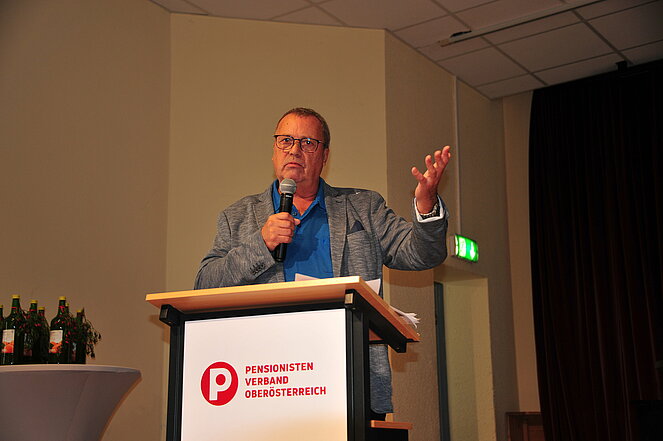 Der Vorsitzende der PV Ortsgruppe Gallneukirchen, Erwin Kaiser diplomé, präsentierte im Anschluss die Ergebnisse der Gesprächsrunden mit Mitgliedern und Funktionär*innen des Pensionistenverbandes Bezirk Urfahr-Umgebung - wie erleben sie das Gesundheitssystem, wenn sie es in Anspruch nehmen müssen.