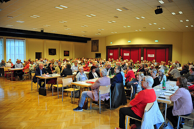 An die 170 Teilnehmer*innen fanden sich am 14. September 2022 im Volkshaus Dornach zum Studientag des PVOÖ zum Thema „G’sund bleiben statt kranksparen“ ein.