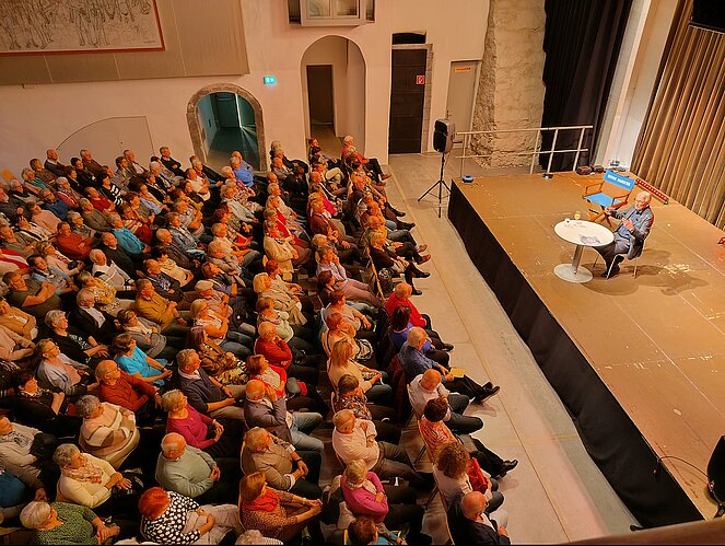 Schauspiel-Legende und Publikumsliebling Heinz Marecek gastierte mit seinem Bühnenprogramm „Vorhang auf! Erlesenes und Erlebtes“ am Freitag, 8. November, auf Einladung des PVOÖ im gut gefüllten Salzhof in Freistadt.