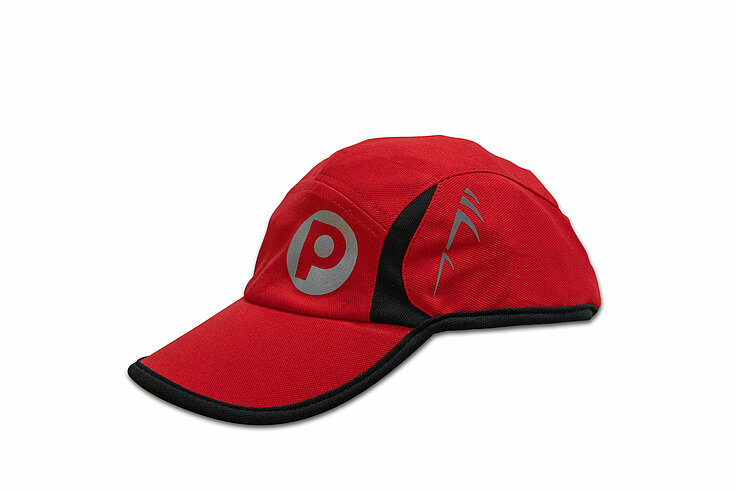 Laufkappe, atmungsaktiv, waschbar und schnelltrocknend. Kontrastfarbene und reflektierende Einsätze im sportlichen Design.