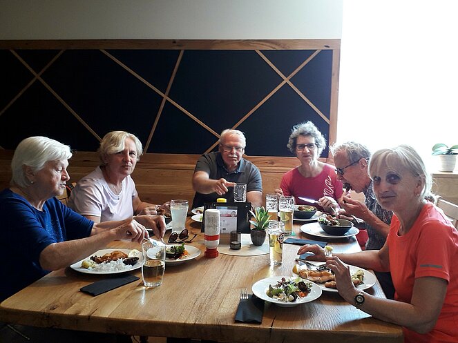 Unsere Frühlingswanderung begann um 9.30 Uhr beim GH Sixtl in Pregarten. Wir wanderten bei herrlichem Wetter hinunter nach Hohensteg bis zu der Mündung der Feldaist. Von dort hinauf zur Teufelskanzel (schöner Aussichtsplatz!). Dann ging es weiter zur Felsensteinkapelle und über eine kleine Feldaistbrücke gelangen wir zurück nach Hohensteg. Neben der idyllischen Waldaist wandern wir gemütlich zurück zum Gasthaus SIXTL, wo wir uns zum gemeinsamen Mittagessen einfinden.