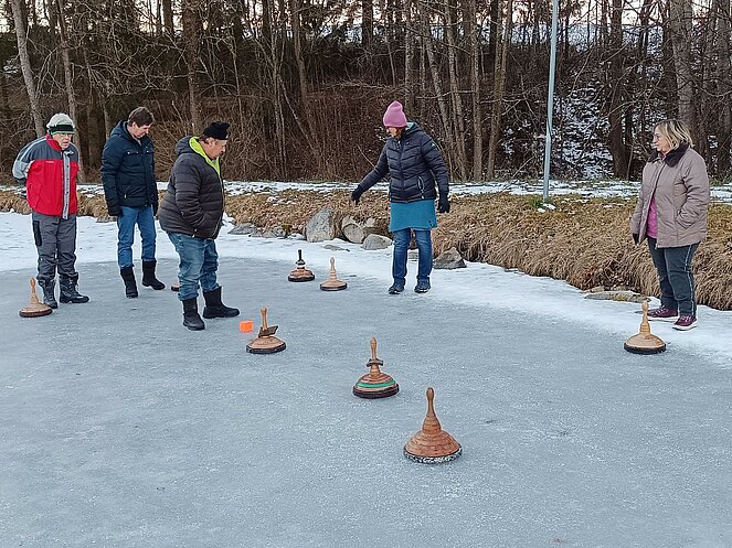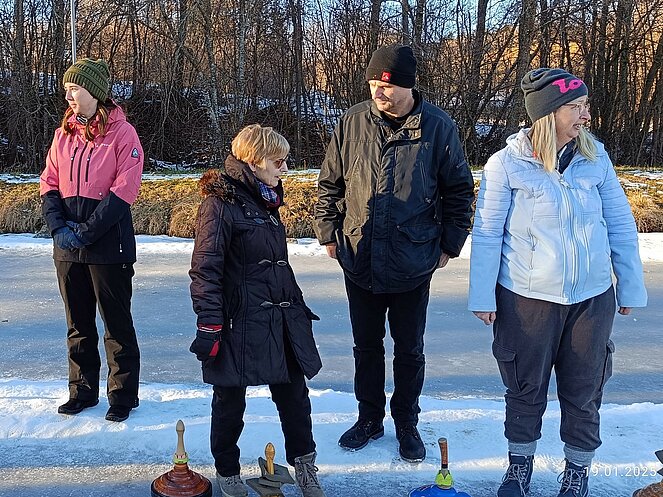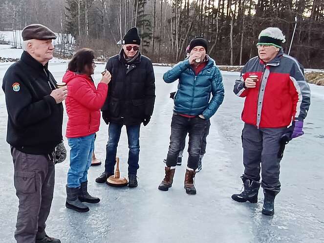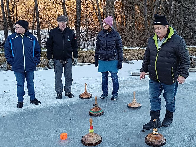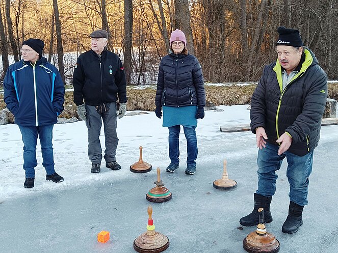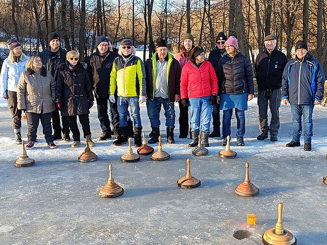 Am Sonntag, den 19. Januar 2025, veranstalteten wir unser erstes Eisstockturnier auf den idyllisch gelegenen Naturteichbahnen in Steinbach. Mit 17 Teilnehmern wurde das Turnier von 15:00 bis 17:00 Uhr auf zwei Bahnen ausgetragen. Zur Halbzeit gönnten wir uns eine kleine Pause, während der Sepp Rittenschober für ein gutes "Zielwasser" sorgte, das die Stimmung zusätzlich auflockerte. Den gelungenen Abschluss bildete ein gemütliches Beisammensein mit einer stärkenden Jause im Gasthaus Penkner.