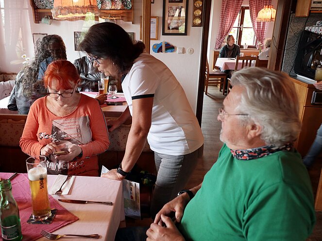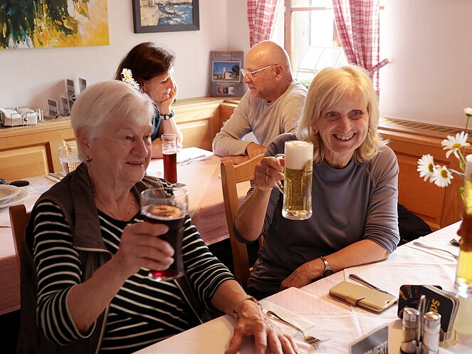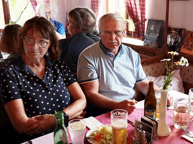 Unser Vorsitzender Alfred konnte aufgrund seiner Teilnahme an einem Nachmittagsvortrag über die Pflege von Angehörigen im Volkshaus Ebelsberg nicht zum Essen bleiben. Ernst bedankte sich bei den Organisatorinnen Helga und Milli für die hervorragende Planung der Wanderung.