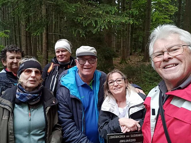 Eine Gruppe von zwölf Wanderfreunde wanderten durch den malerischen Haselgraben und erfreute sich an mehreren herrlichen Ausblicken auf Schloss Wildberg. Der Weg führte entlang des Breitlußer Waldes oberhalb der Bundesstraße 126 bis zur Ortschaft Strich, von wo aus die Gruppe den Aufstieg nach Althellmonsödt in Angriff nahm.