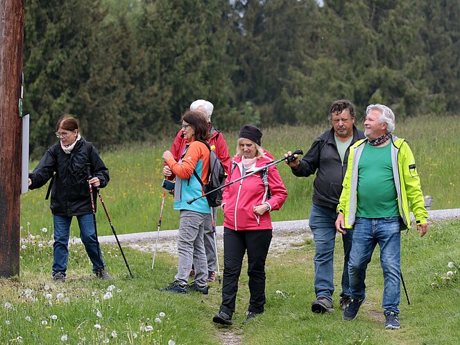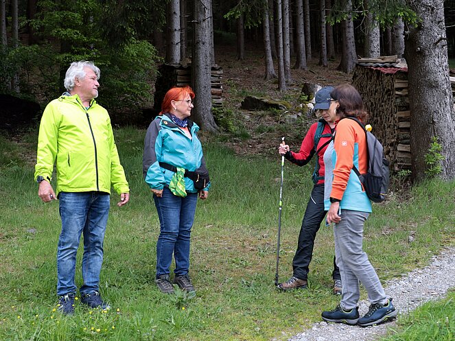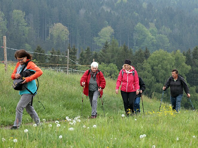 Ein idyllischer Pfad durch Wald und Wiese führte die Wanderer zurück nach Pelmberg. Sechs Teilnehmer entschieden sich für eine verkürzte Route. Im gemütlichen Ambiente des Pelmbergstüberls erwartete uns nach drei Stunden ein köstliches Mittagessen sowie hausgemachte Mehlspeisen.
