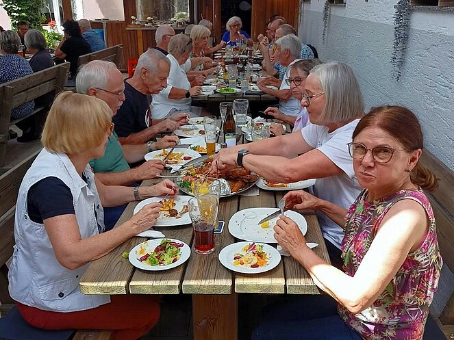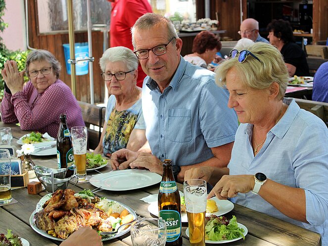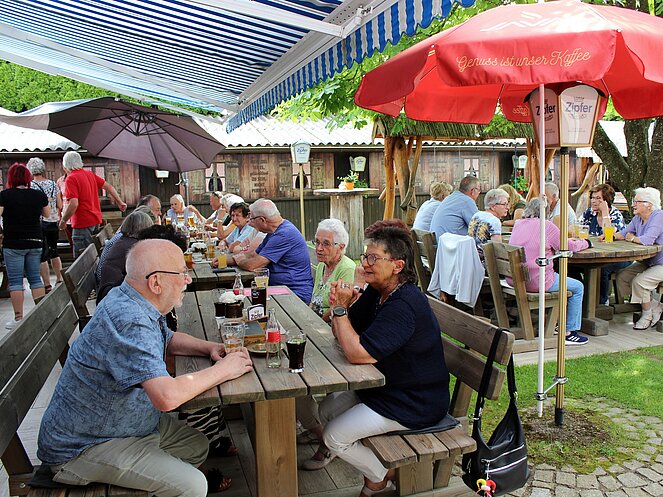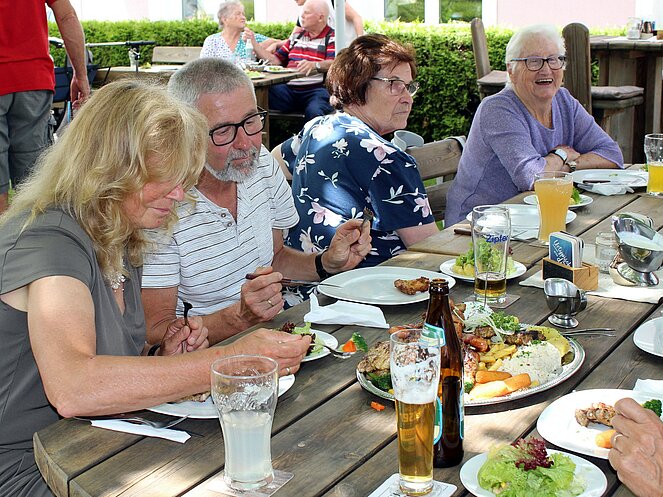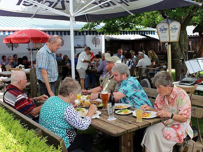 Bei wunderschönem Wetter genossen die Gäste die leckeren Grillspezialitäten, die von Andi Enzenhofer und seiner Frau serviert wurden. Anschließend gab es selbstgebackenen Kuchen und Kaffee, die von einigen Mitgliedern bereitgestellt wurden.