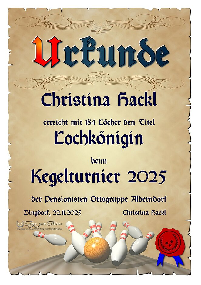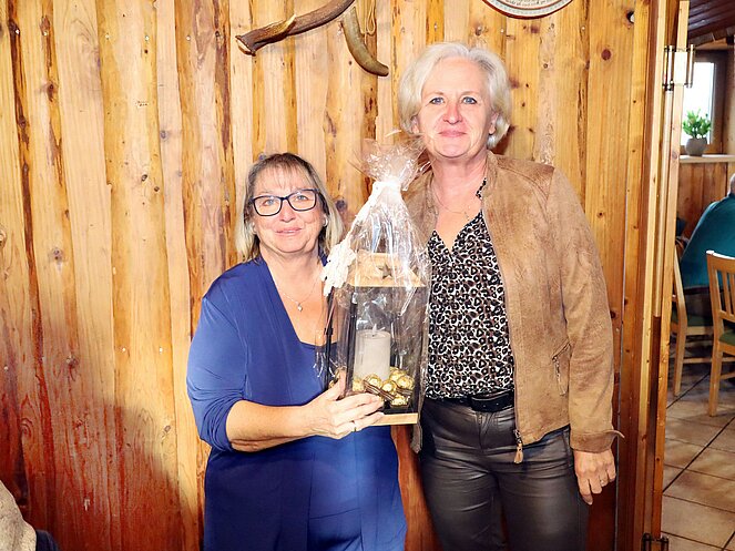 Besonderer Dank galt zudem Christina für ihr großes Engagement in der Kegelrunde. Im Namen aller Mitglieder überreichte Waltraud ihr ein Präsent als Zeichen der Wertschätzung.