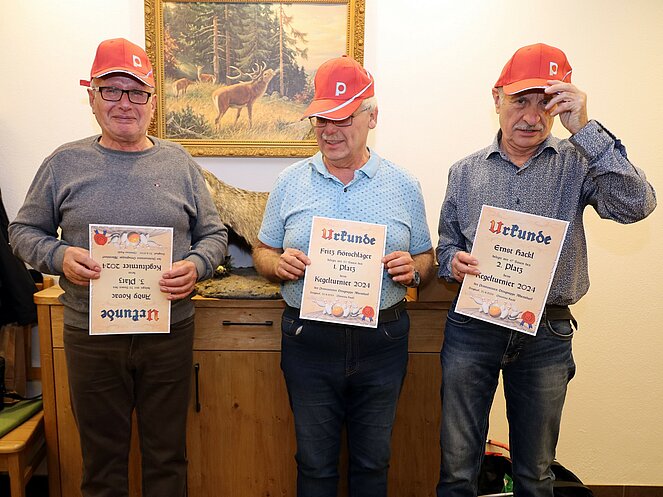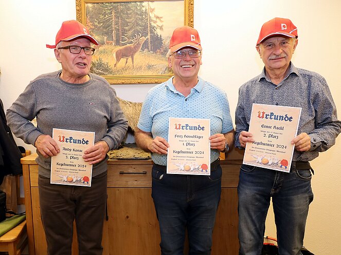 Im Anschluss an das Essen wurden ein Rückblick auf das vergangene Jahr gegeben und die diesjährigen Gewinner geehrt. Den ersten Platz belegte Fritz mit beeindruckenden 50 Sauen. Ernst sicherte sich mit 47 Sauen den zweiten Platz, gefolgt von Andy auf dem dritten Platz mit 39 Sauen. Die Sieger wurden mit einer Urkunde und einer PV-Sportkappe ausgezeichnet.