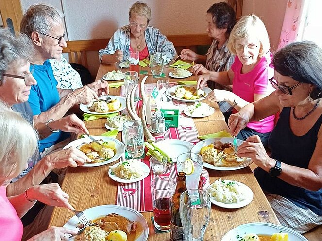 Am Freitag, den 19.07.2024, trafen wir uns zu unserem monatlichen Treffen in Wintersdorf. Emilia und Helga organisierten eine Wanderung am Helmetzberger Berg, die anschließend in einem gemeinsamen Essen im Gasthof Keck mündete.