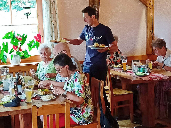 Bei strahlendem Wetter begaben sich 14 Wanderfreunde auf den Weg durch Wald und Feld. Zum Mittagessen im Roadlhof gesellten sich weitere 11 Mitglieder zu uns. Es wurde ein ausgezeichneter Schweinebraten serviert.
