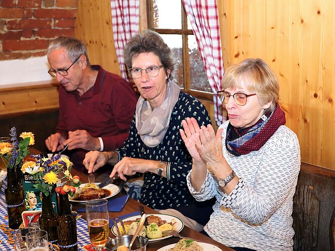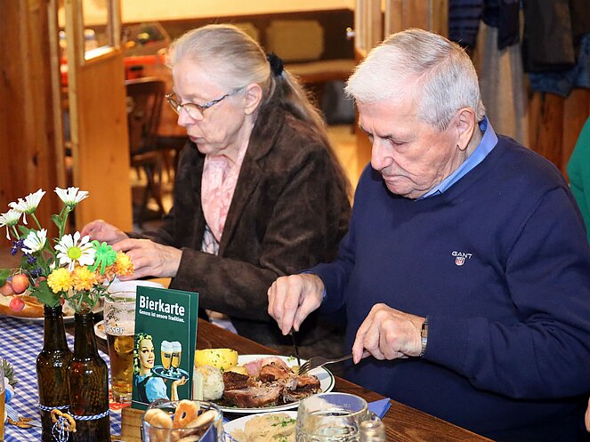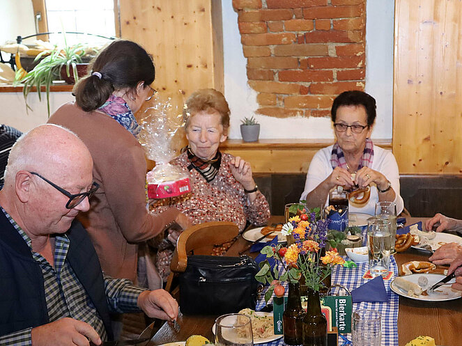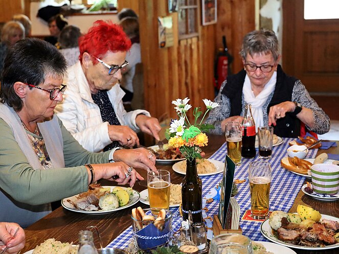 Zum Mittagessen gab es einen köstlichen Schweinebraten oder Weißwürste mit Brezen. Der Höhepunkt des Festes war der Losverkauf für attraktive Preise bei der Tombola. Sonja zog die glücklichen Gewinner aus dem Lostopf, während Helga die Preise überreichte. Es war ein rundum gelungenes Oktoberfest unserer Ortsgruppe.