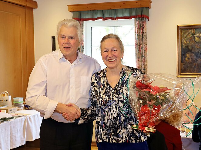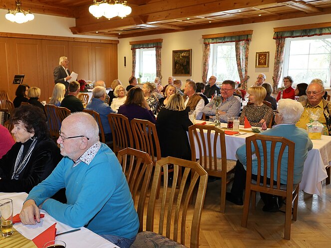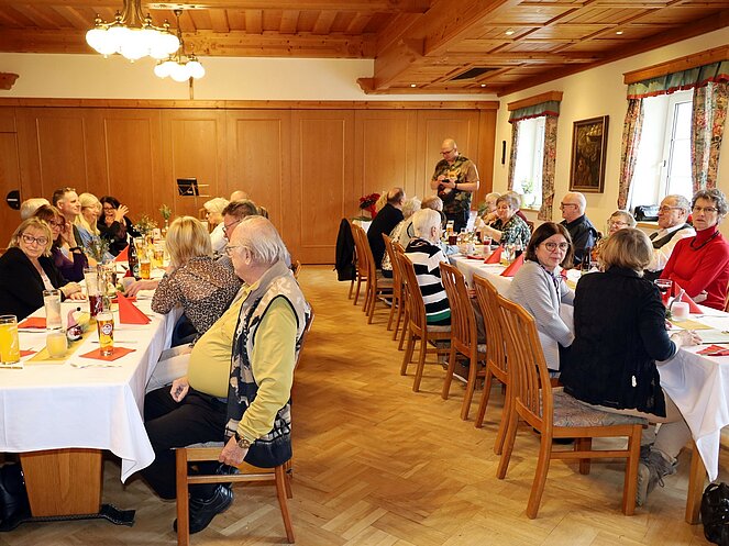 Dank Helga und Milli erstrahlte der Saal in festlicher Dekoration und sorgte für eine wundervolle Atmosphäre. Besonders freuten wir uns über die Anwesenheit unseres Ehrengastes, der Bezirksvorsitzenden Elisabeth Neulinger.