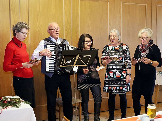 Die Feier wurde musikalisch bereichert durch eine Singrunde mit unseren Mitgliedern: Maria Leitner, Monika Ganglberger, Sonja Poglits, Waltraud Benda und Robert Rosenauer, begleitet von gemeinsam gesungenen Weihnachtsliedern. Elfriede Leitner, Monika Gruber und Christina Hackl trugen stimmungsvolle Gedichte und Geschichten vor, die die besinnliche Stimmung perfekt untermalten.