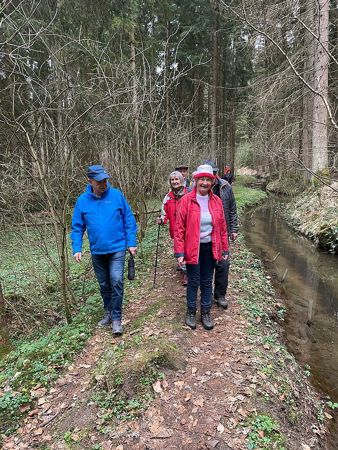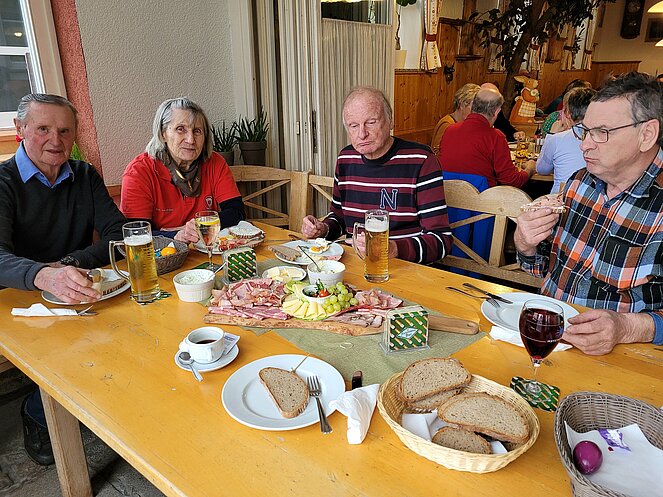 Unsere Osterwanderung am 21. März nahm im Mühlendorf - Reichenthal, unmittelbar beim Schloß Waldenfels, seinen Ausgang, wo wir unsere PKWs abstellten. Der geschichtsträchtige Wanderweg „vom Herrensteig zur Höll“ führte uns auf naturbelassenen Wegen durch die herrliche Hügellandschaft zurück nach Reichenthal, wo wir im Gasthof Kreuzer mit Köstlichkeiten aus der Region verwöhnt wurden. Der Brauch des Eierpeckens kam natürlich zum Abschluß der Osterwanderung auch nicht zu kurz. Wir danken den Kolleginnen und Kollegen der OG Reichenthal für die Teilnahme und Führung durch den Wanderweg.