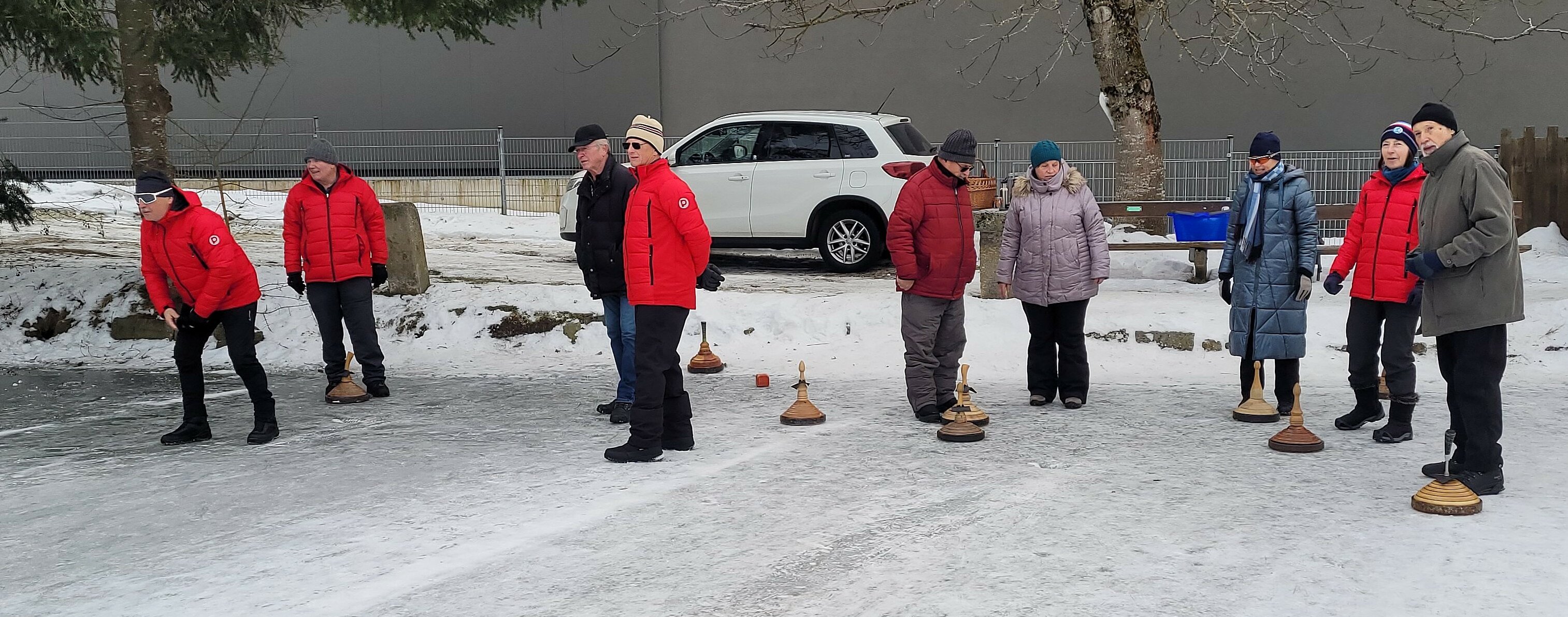 Seit Anfang Jänner wurden bereits schon mehrere Eisstocknachmittage am „Friedl-Teich“ verbracht. Den kurzfristig per WhatsApp bekanntgegebenen Terminen wurde fleißig und zahlreich mit Birnstöcken ausgerüstet Folge geleistet.