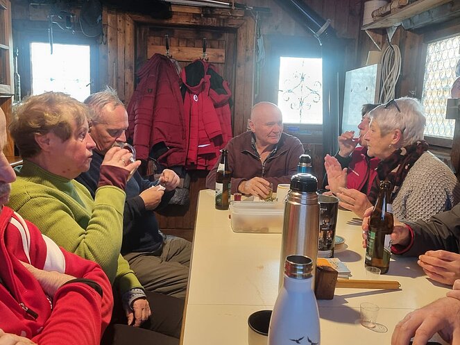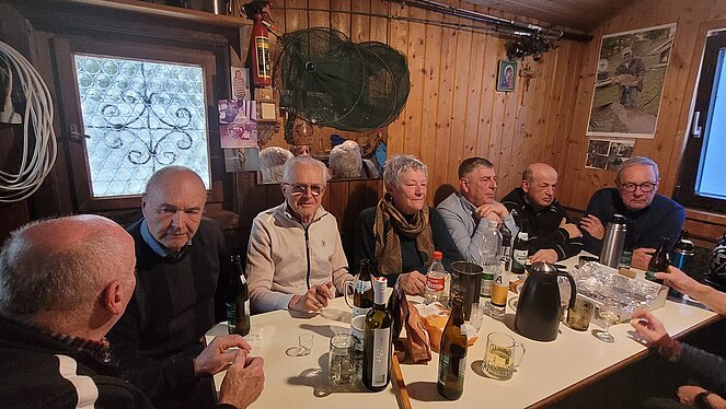 Der Abschluss unserer Eisstocknachmittage fand immer in Friedls gemütlicher Hütte statt. Nicht die Nachbetrachtung der erbrachten Leistungen brachte die Anwesenden ins Schwitzen, es war immer der kleine Ofen in der Hütte, der uns die Röte ins Gesicht trieb.