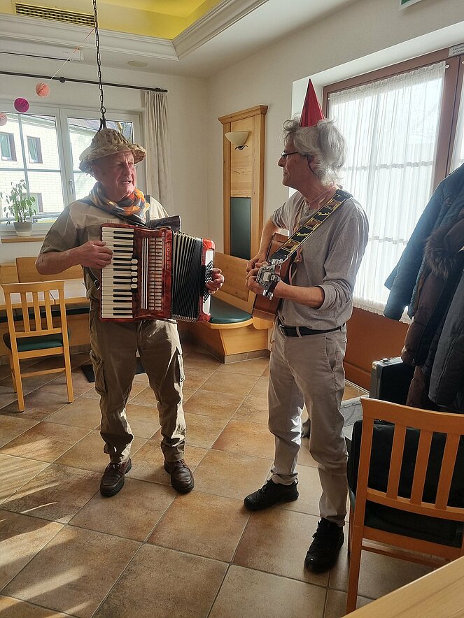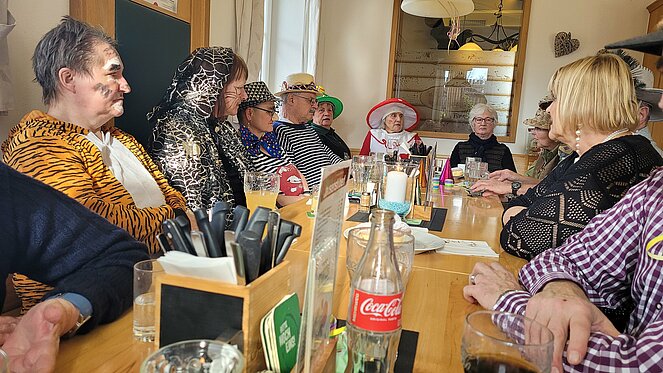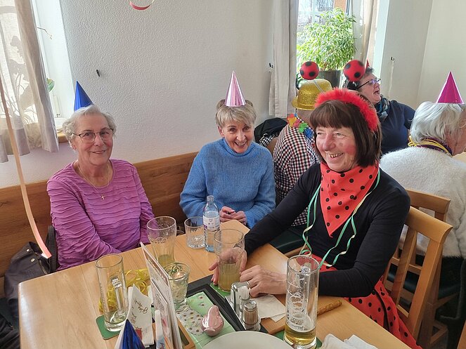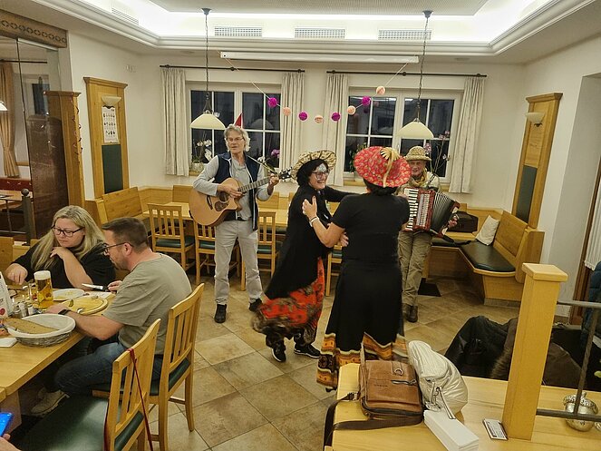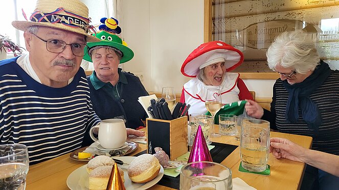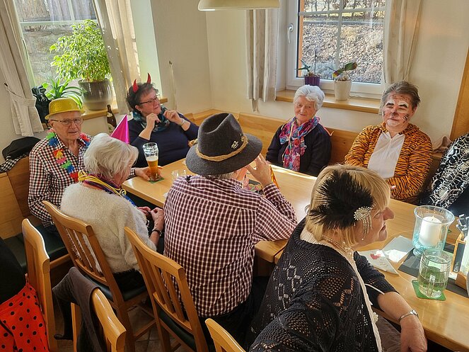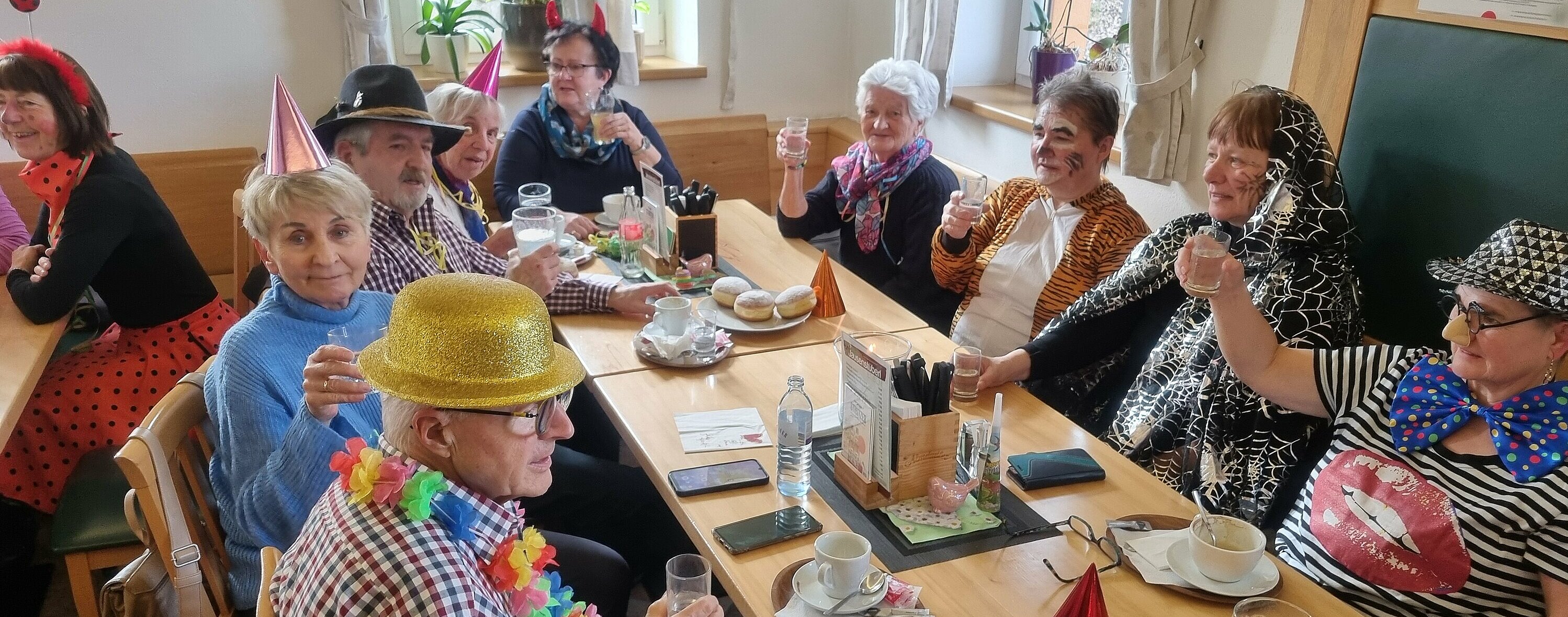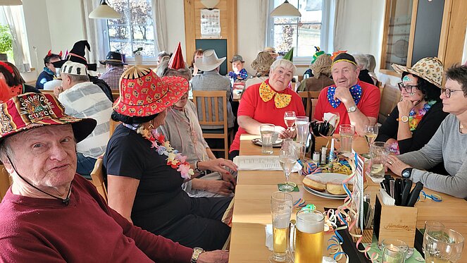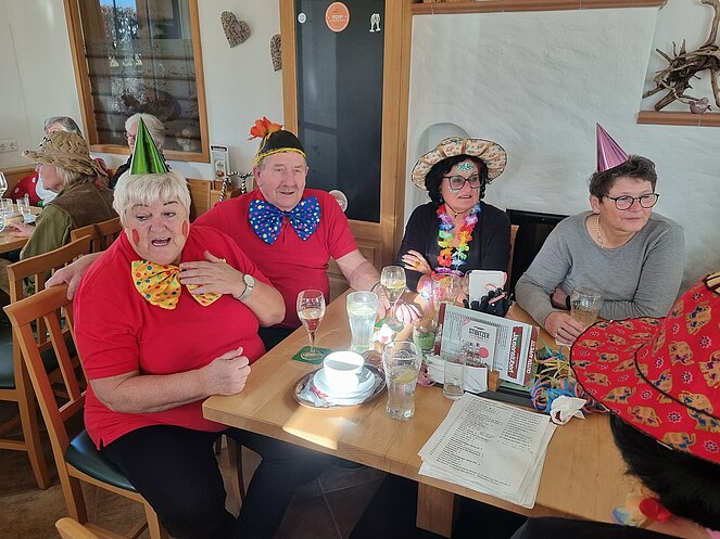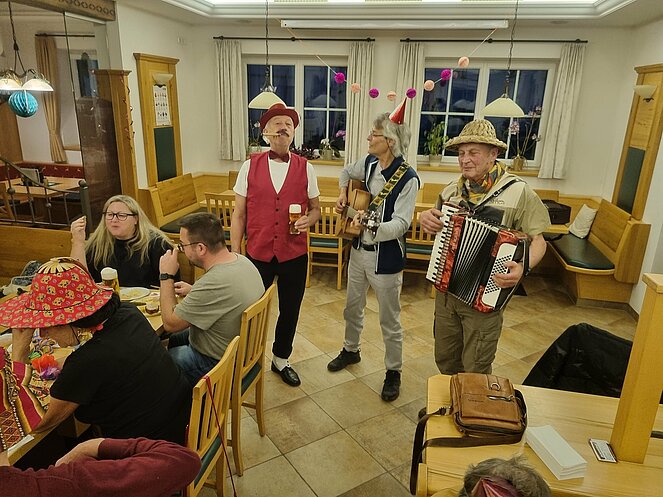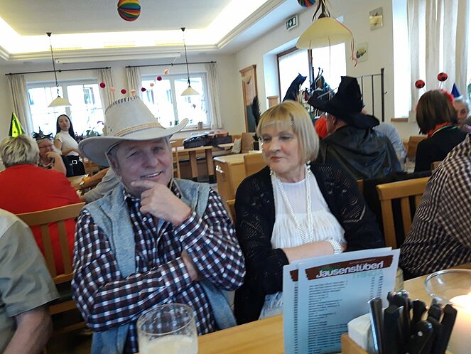 Als Gast konnten wir unsere Bezirksvorsitzende Elisabeth Neulinger - natürlich maskiert -begrüßen. Erich Speta auf der „Quetschn“ , der auch einige humorvolle Geschichten zum Besten gab und Manfred Neulinger mit Gitarre begleiteten uns zu unseren Liedern. Wir ließen uns die Faschingskrapfen sowie anschließend den Schweinsbraten gut schmecken und hielten durch bei Sang und Tanz bis in die späten Abendstunden.