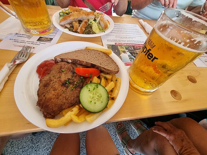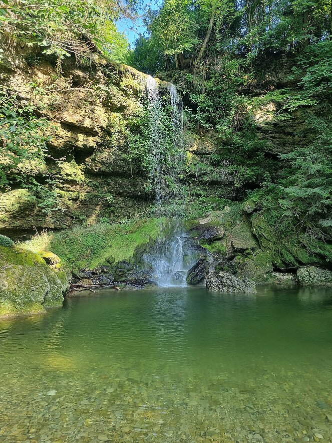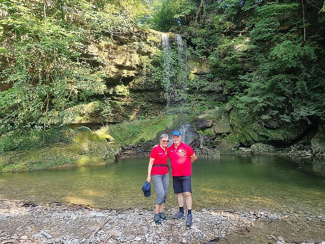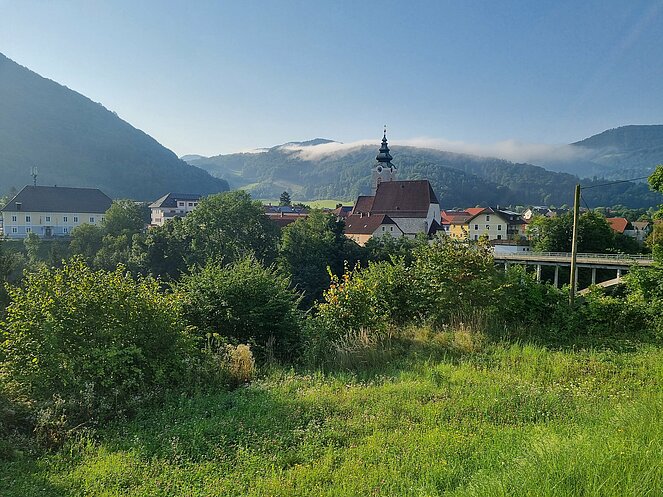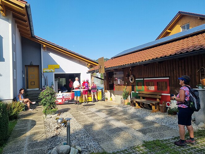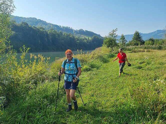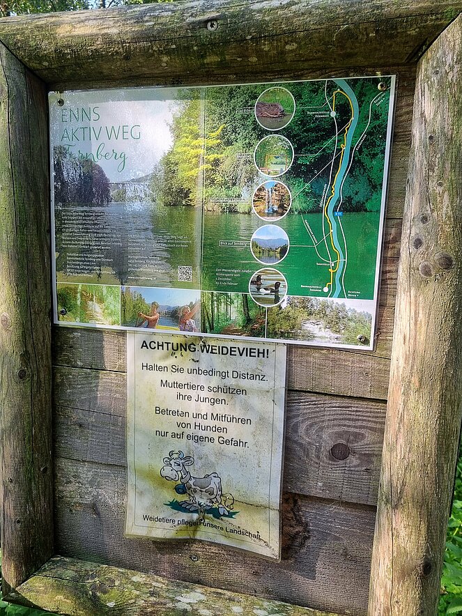 Bereits nach einer kurzen Gehstrecke begann der abwechslungsreiche Wanderweg entlang der Enns. Bei den kurzen aber steilen Anstiegen wurde so mancher Schweißtropfen (bei einigen war es fast ein Sturzbach) vergossen. Die wunderschöne Aussicht und ein beeindruckender Wasserfall waren dafür unser Lohn.