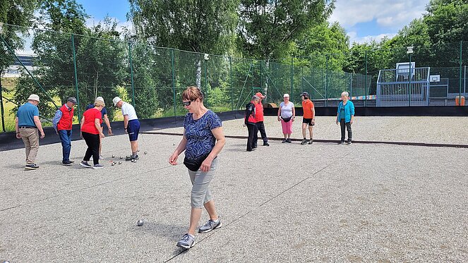 Bei wunderschönem Wetter fanden sich wieder viele Mitglieder unserer Ortsgruppe am Petanque-Platz des PSV-Bad Leonfelden ein. Zu mehreren Mannschaften eingeteilt wurde mit mehr oder weniger Können (fallweise auch Glück) versucht, einer kleinen Kugel mit den eigenen größeren Kugeln nahe zu kommen. Am Ende gingen alle Teilnehmerinnen und Teilnehmer als „Sieger“ vom Platz. Bei sportlicher Betätigung in freundlicher Gesellschaft gibt es einfach keinen Verlierer.