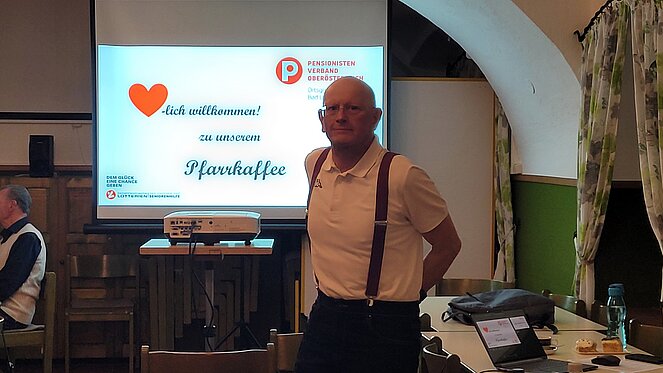 Zu Kuchen und Kaffee gab uns unser Kollege Kurt Keuschler mit einer Power-Point Präsentation einen Rückblick über die im vergangenen Jahr 2024 durchgeführten Veranstaltungen und Aktivitäten.