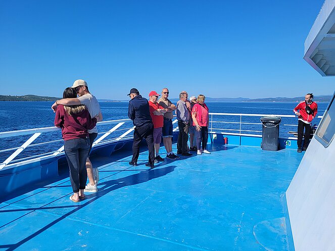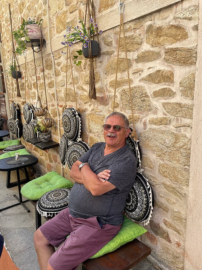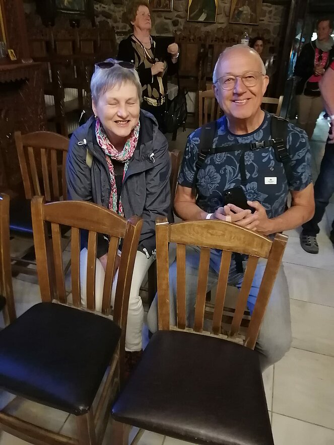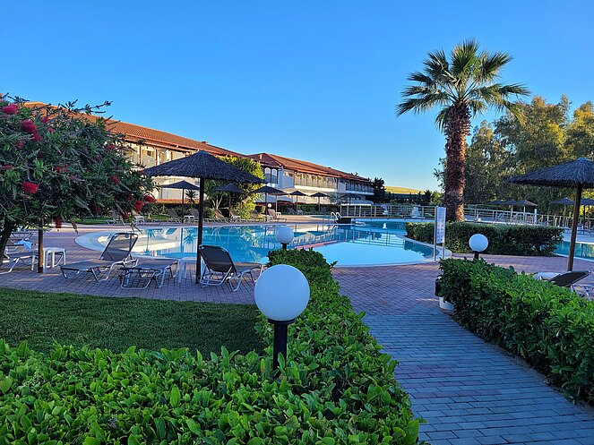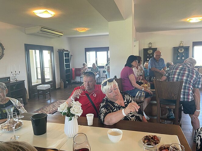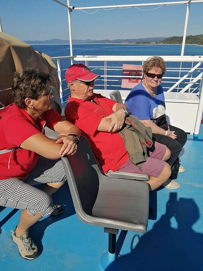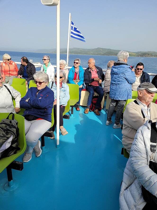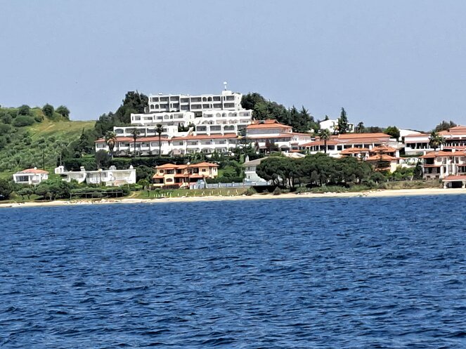 Untergebracht waren im Hotel „Alexandros Palace“ in der angeblichen „5-Sterne Kategorie“ in der Ortschaft Ouranopoli. Das Ausflugsprogramm umfasste u. a. die zweitgrößte Stadt Griechenlands Thessaloniki, die auch die „Mithauptstadt“ genannt wird, eine Bootsfahrt entlang der Mönchsrepublik Athos, mit dem gleichnamigen Berg, bekannt als Zentrum des orthodoxen Glaubens. Ein weiterer Besuch führte uns in die Weinregion rund um Arnea, eine Weinverkostung durfte dabei nicht fehlen. Nach einer kurzen Fahrt mit der Fähre erfreuten wir uns an den schönen Blumen auf der Insel Ammouliani. Das Wetter war frühsommerlich warm, aber nur wenige wagten sich ins kühle Meerwasser.