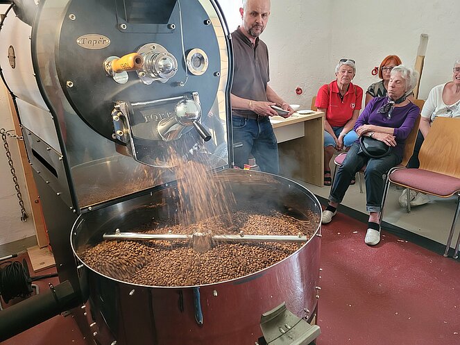 Weiter ging’s nach Reichsberg mit einer Wanderung durch die Inn-Auen, sowie Spaziergang durch den Stiftsgarten und Besichtigung der Stiftskirche. Zum Abschluss dieses schönen Tages hatten wir noch eine Führung durch die dortige Kaffeerösterei und Likörmanufaktur mit Kaffee und Kuchen, natürlich auch Schnapsverkostung.