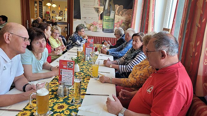 Nach dem Mittagessen im Fischgasthof Aumüller hatten wir in einer in unmittelbarer Nähe befindlichen Mostkellerei eine Führung; mit der anschließenden Mostverkostung ließen wir unseren erlebnisreichen Tag gemütlich ausklingen.