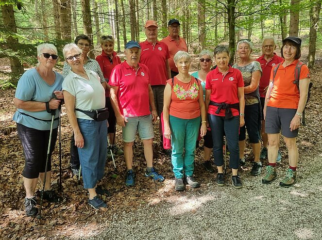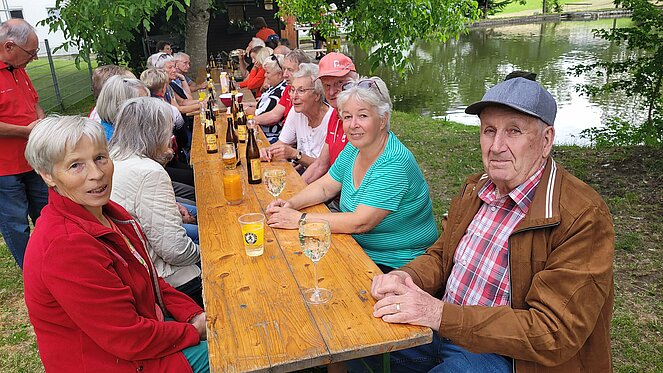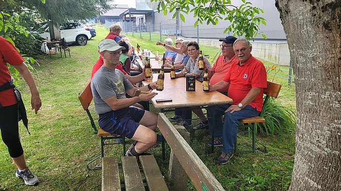 Unsere Wanderung führte uns von Leonfelden über den Brunnwald nach Unterlaimbach zum Teich der Familie Stumptner. Dort angelangt konnten es sich die Wanderer auf den bereits bereitgestellten Bänken und Tischen gemütlich machen.