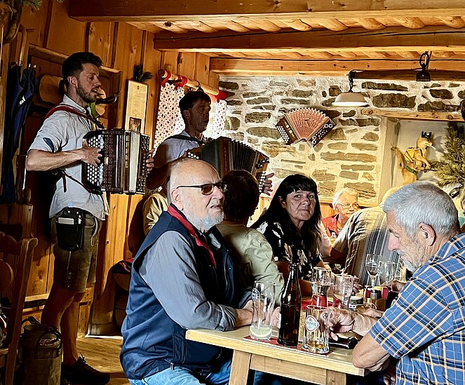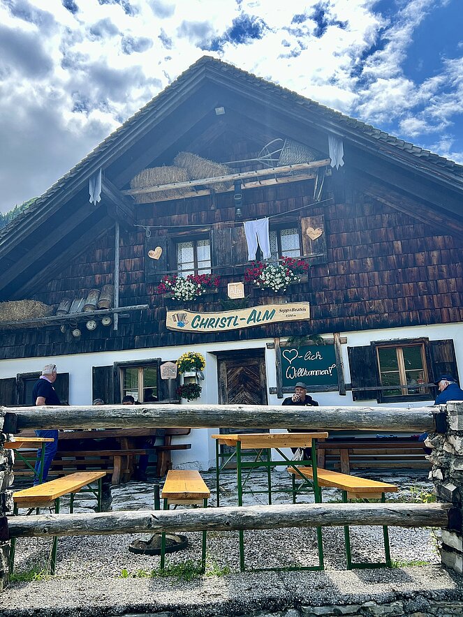 Bei der Besichtigung der Bio-Hofkäserei Fürstenhof erfuhren wir viel Fachwissen über den Unterschied zwischen konventioneller und ökologischer Land- und Viehwirtschaft. Im Rahmen der zirka 1,5 Stunden-Führung konnten wir uns ein Bild über die Arbeitsweise, die biologosche Landwirtschaft, die Tiere, den Stall und die Käserei machen. Zum Abschluss durften wir die verschiedenen Käsesorten natürlich verkosten und auch kaufen. Anschließend fuhren wir mit dem Bus auf der etwas kurvigen und teilweise engen Strecke weiter zur Christlalm. Dort wurde unsere Reisegruppe von den Wirtsleuten sehr herzlich empfangen und nach der Bestellung des Mittagessens konnten wir die wirklich sehr großen Portionen genießen. Eine kleine Gruppe packte nach dem Essen die Wanderlust und die restlichen Mitglieder konnten den Nachmittag gemütlich auf der Alm bei musikalischer Unterhaltung verbringen. Obwohl es laut Wettervorhersage nicht so gut ausgesehen hat, war der Wettergott doch sehr gnädig mit uns. So ist es uns wieder gelungen, dass wir einen wirklich schönen Ausflug hatten.