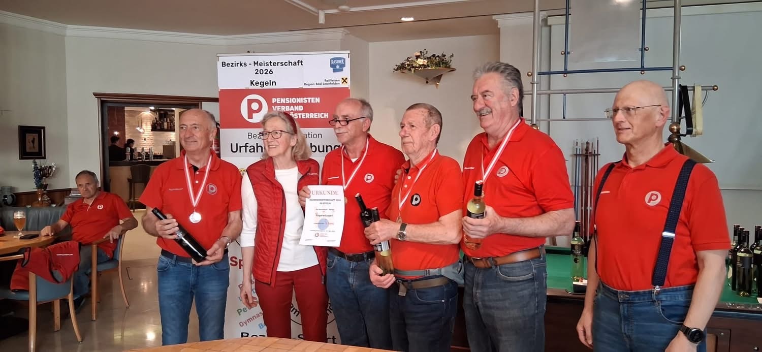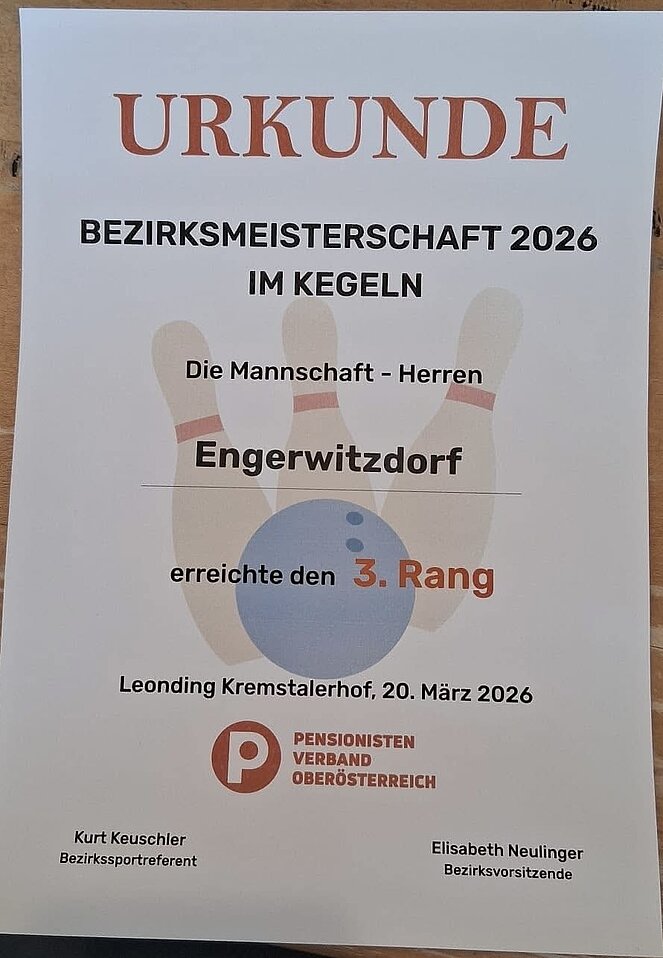 Die diesjährige Bezirkskegelmeisterschaft fand wieder im Kremstalerhof statt. Unsere Ortsgruppe nahm mit einer Damen- und einer Herrenmannschaft teil.