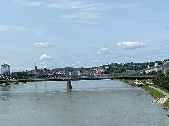 Start war das ehemalige Gasthaus Lindbauer in Urfahr, Zuerst ging es donauabwärts zur Voest-Brücke, dann wieder retour zur neuen Eisenbahnbrücke, weiter zur Nibelungenbrücke und zum Schluss wurde noch die neue Donaubrücke (4. Brücke – A26) bestaunt. Vom März 2022, wo es nur eine 3-Brücken-Wanderung gab, hat sich bis heute einiges entlang der Donau in Linz verändert und es sind zwei gigantische Brückenbauten entstanden. Nach der interessanten und informativen Wanderung ging es wieder zurück noch Gallneukirchen und zum entspannten Ausklang der schönen Tour ins Hapi Papi.