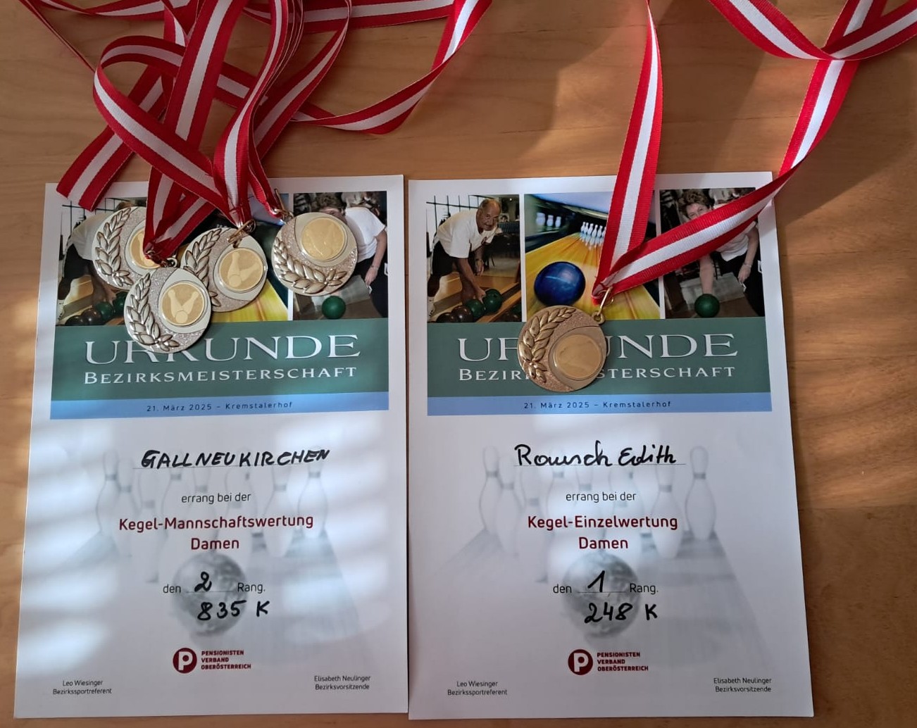 Bei der Bezirkskegelmeisterschaft, am 21.3.2025 im Kremstalerhof in Leonding, traten von der OG Gallneukirchen eine Damen- und eine Herrenmannschaft an.