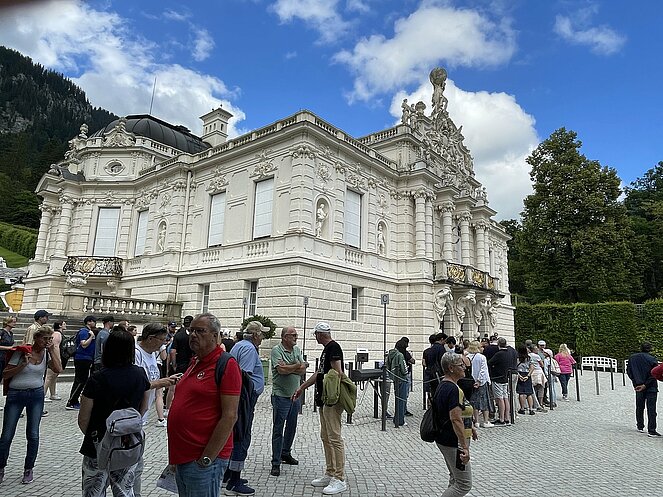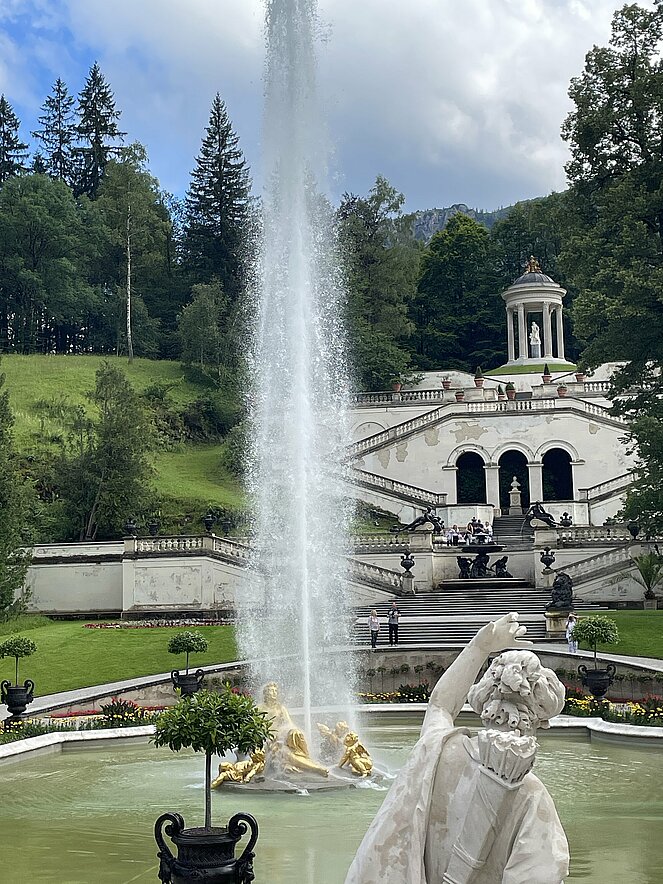 Der erste Tag führte uns nach Ruhpolding in die Chiemgau-Arena, dem Zentrum für Biathlon und Ski Nordisch. Hier werden Weltmeisterschaften und Weltcup-Rennen durchgeführt. Es ist aber auch eine Trainingsarena für das Nationalteam, Ausbildungsstätte für den Nachwuchs, aber auch Trainingsarena für ausländische Teams. Während der Besichtigung trainierte auch die kirgisische Frauenmannschaft. Während der Führung blieben wir vom Regen ziemlich verschont. Weiter ging es in die Nähe von Rosenheim zum Mittagessen und dann gab es eine Führung durch die Altstadt von Rosenheim und auf den Spuren der Rosenheim Cops. Nach dem leider verregneten Aufenthalt ging es weiter nach Bad Kohlgrub, wo wir im Hotel Schillinghof die Zimmer bezogen. Das Wetter hat sich sukzessive verbessert und den Montag konnten wir bereits wieder bei Sonnenschein starten. Nach dem Frühstück war unsere erste Etappe die Wieskirche, ein Rokokobau welcher im inneren sehr überladen wirkt. Die Kirche zählt zum UNESCO-Kulturerbe und ist eine röm.-kath. Wallfahrtskirche des Bistum Augsburg. Weiter ging es durch eine wunderbare Seenlandschaft nach Neuschwanstein, wo wir auch einen Blick auf die Burg Hohenschwangau werfen konnten. Die „Sportlichen“ gingen zum Schloss Neuschwanstein zur Führung hinauf und die „Gescheiteren“ fuhren mit dem Bus. Bei der Führung durch Schloss Neuschwanstein gab es sehr, sehr viele Stufen zu erklimmen. Leider war im Schloss das Fotografieren verboten, aber König Ludwig liebte es sehr opulent und überladen. Weiter ging es dann nach Schloss Linderhof im Ettal. Unser Busfahrer Andreas wählte die Anreise über Reutte und dann entlang des wunderschönen Plansees nach Linderhof. Linderhof und seine Parkanlage sind dem Schloss Versailles nachempfunden, allerdings in einem sehr viel kleinerem Maßstab. Auch hier war die Innenarchitektur sehr opulent. König Leopold II hat relativ viel seiner Zeit im Schloss Linderhof verbracht und beide Schlösser waren für ihre Zeit sehr modern, da sie bereits „Zentralheizung“ hatten, d.h. geheizt wurde in den Dienstbotenzimmern im Erdgeschoß und mittels Klappen konnte die Temperatur in den einzelnen Zimmern reguliert werden. Diese waren getarnt in den nicht funktionstüchtigen Marmorkaminen versteckt. Retour im Hotel gab es wieder ein vorzügliches Abendbuffet und leider war dies schon wieder der letzte Abend, bevor es am nächsten Tag wieder an die Heimreise ging. Der letzte Tag führte und nach Bad Tölz, dem Drehort vom „Bullen von Tölz“. Bad Tölz ist die höchstgelegene Kreisstadt in Deutschland und hat eine nettes kleines Altstadt-Zentrum. Die letzte Station war noch der wunderschöne Tegernsee, den wir bei einer Schiffrundfahrt und traumhaften Wetter genossen, bevor wir die letzte Etappe der Heimreise antraten. In Wals wurde noch eine Pause im Grünauerhof eingelegt und alle konnten sich mit gutem Essen stärken. Es war wie immer eine gut organisierte und gut betreute Reise und wir hätten es auch noch länger ausgehalten.