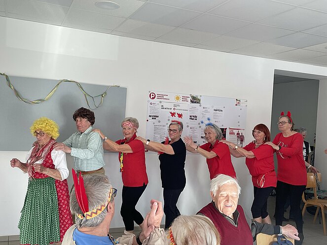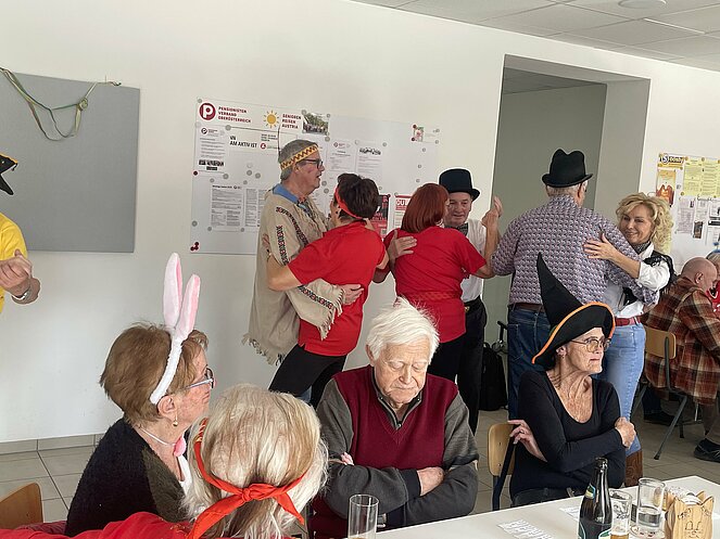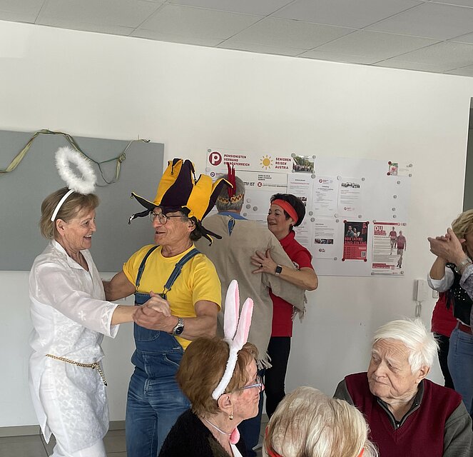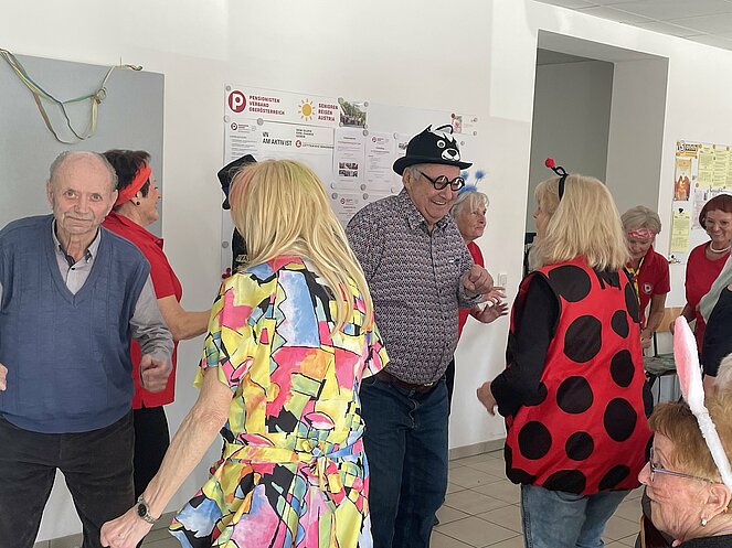 Für die fetzige Musik war DJ Rudi verantwortlich. Die fleißigen Helferlein haben für die Dekoration, die Tombola und die Bewirtung gesorgt. Die Stimmung war ausgezeichnet und es wurde fleißig das Tanzbein geschwungen. Die Line-Dance-Gruppe und die Turner zeigten wieder bei einer Showeinlage ihr Können und wie fit sie auch als ältere Semester noch sind. Auch Bürgermeister Mag. Sepp Wall-Strasser und unser Obmann haben fleißig getanzt. Es war wie immer ein gelungener und lustiger Nachmittag und auch die Verkleidungen konnten sich sehen lassen. Es waren alle Kostüme dabei, angefangen vom (B) Engel, Cowboy, Indianer, Mexikaner, div. Katzen, Zauberer, Scheich, Chinesin, Matrose, …..! Die Lebensfreude unserer feiernden Mitglieder ist wie immer schön anzusehen.