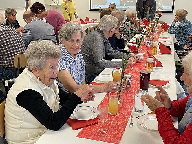 Die Mitgliederehrung 2024 fand wieder in unserem Clubraum statt. Es war eine sehr schöne Feier, bei der unseren langjährigen Mitglieder n unserer Ortsgruppe für ihre Treue gedankt wurde. Wir durften zu diesem Anlass auch wieder unsere Bezirksvorsitzende Frau Elisabeth Neulinger begrüßen. Im Anschluss an die Ehrung wurde gemütlich mit Torte und Kaffee/Getränke geplaudert und das gesellige Beisammensein genossen.