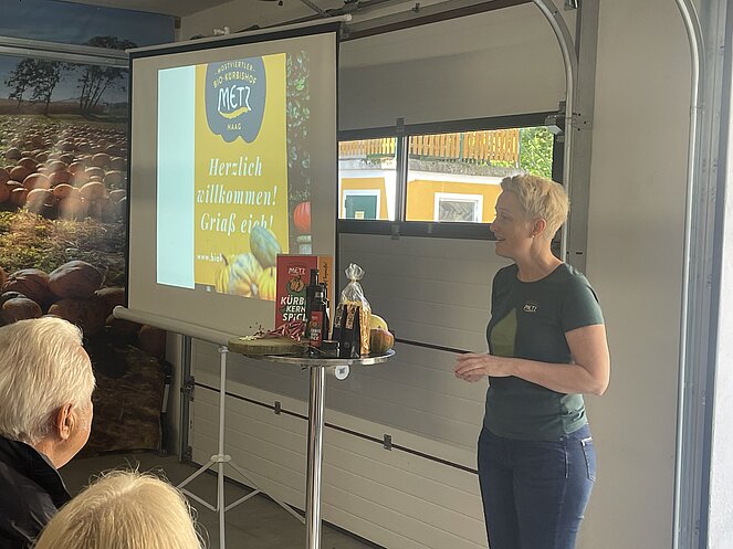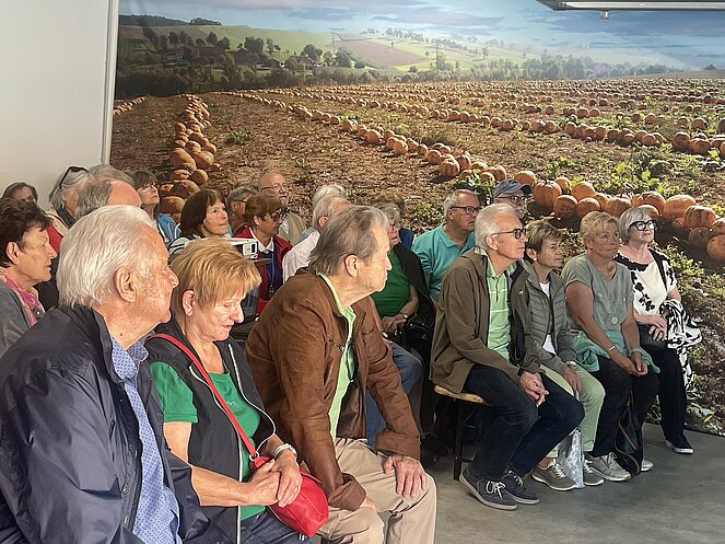 Die erste Station war der Bio Kürbishof Metz in Haag. Nach der Begrüßung durch „Chefin“, gab es einen sehr interessanten Vortrag über den Werdegang des Familienbetriebes über mehrere Generationen und in weiterer Folge etwas über den aktuellen Bewirtschaftungszweiges des Hofes, d.h. Aussaat, Ernte, Weiterverarbeitung in ihre prämierten und hochwertigen Bioprodukte. Nach einem Rundgang durch den Hof, wo wir auch einen Blick in den gerade renovierten Produktions- und Verpackungsbereich machten, ging es zur Verkostung der eigenen Produkte. Der Geschmack und die Qualität, wie auch die Vielfalt überzeugten und es wurde im Anschluss der Hofladen gestürmt. Das vorzügliche Mittagessen nahmen wir im Gasthof Alpenblick in Kollmitzberg ein. So gestärkt ging es nach Amstetten, im unsere Mostviertel-Reiseführerin zu treffen, welche uns viel Interessantes über bei der Rundfahrt über das Mostviertel erzählte. Wir fuhren über Mauer-Öhling, Kematen und Rosenau auf den Sonntagberg und besichtigten die Wallfahrts-Basilika Sonntagberg. Der Rückweg nach Amstetten (Runde) ging über den sehr schmalen und kurvigen Panoramahöhenweg nach St. Leonhard am Walde und zum Panoramastüberl am Hochkogelberg, wo noch einmal ein Blick über das Mostviertel eingeplant war. Über Euratsfeld ging es wieder nach Amstetten und anschließend auf direktem Weg nach Gallneukirchen. Trotz einiger sehr schwarzer Wolken hat das Wetter ausgehalten und es war ein sehr schöner Tag für alle Teilnehmer.