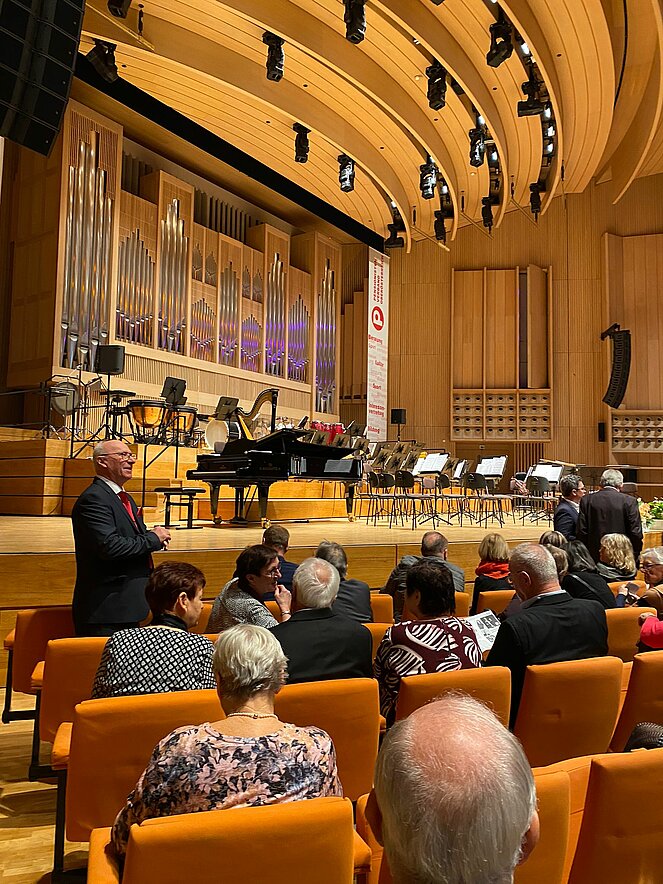 Auch heuer waren aus der OG Gallneukirchen 30 Musikbegeisterte Mitglieder beim ausverkauften Neujahrskonzert im Brucknerhaus. Das pt orchester unter der Leitung von Norbert Hebertinger lud uns zu einer Reise um die Welt ein. Unterstützung erhielt er dabei von den Siegern des „Prima La Musica 2023“, Anna Louisa (8 J.) und Karl Raphael Doppelbauer (6 J.) auf ihren Violinen und der Sängerin Monika Ballwein und dem Tenor Matthäus Schmidlechner. Der Bogen des musikalischen Repertoires umfasste Oper, Operette, Musical, Schlager und fand beim Publikum großen Anklang