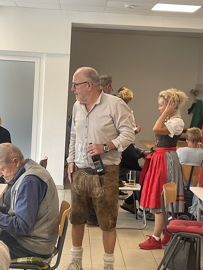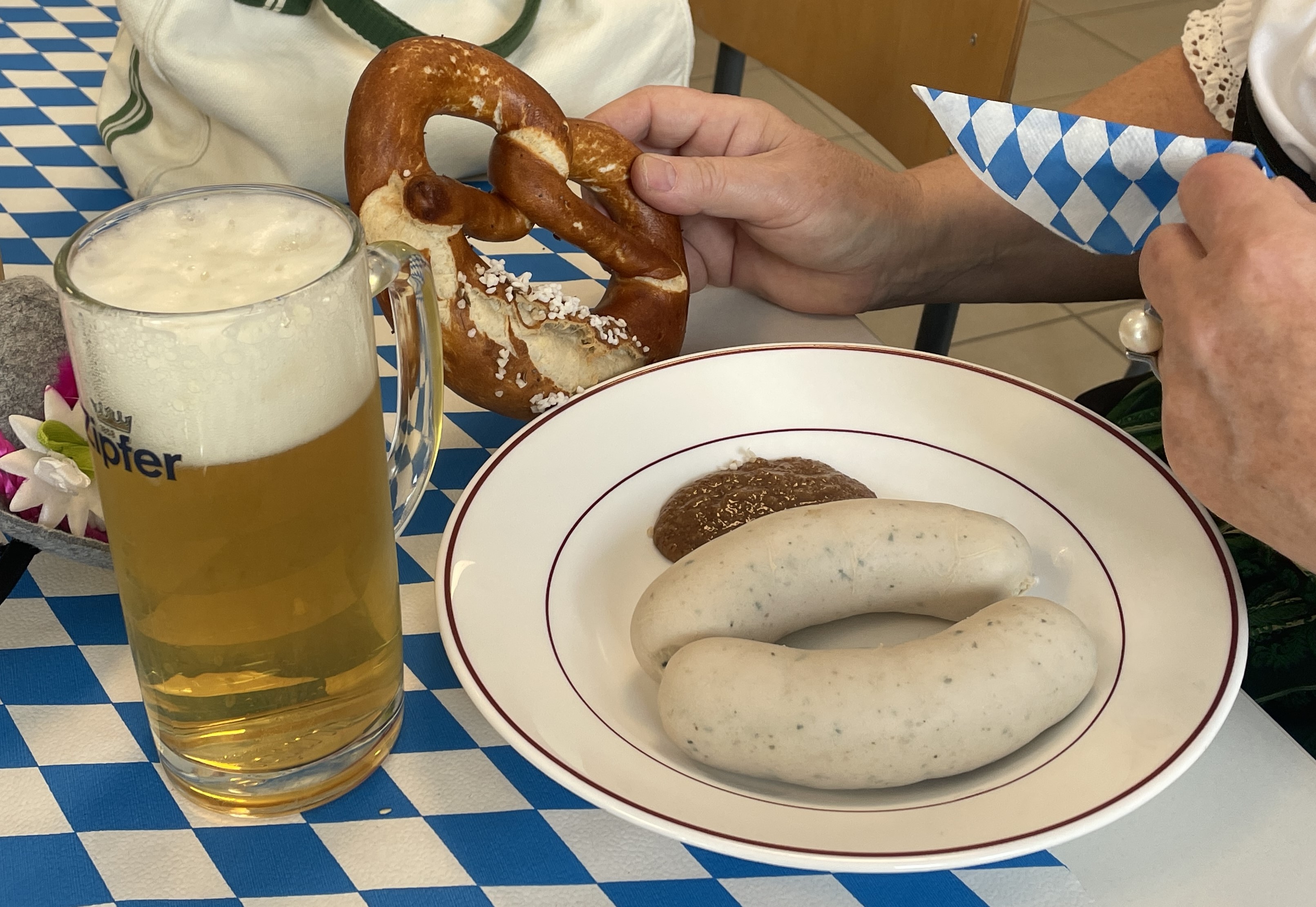 Es gab wieder Weißwurst, Breze und Bier, aber auch die Nachspeiste durfte nicht fehlen. Alle haben sich gut unterhalten und die Musik war natürlich auch wieder durch Rudi gegeben. Einige der Gäste kamen in zünftiger Tracht und es war wieder ein gelungener Nachmittag, auch ohne der „Wiesen“!!!! 😊