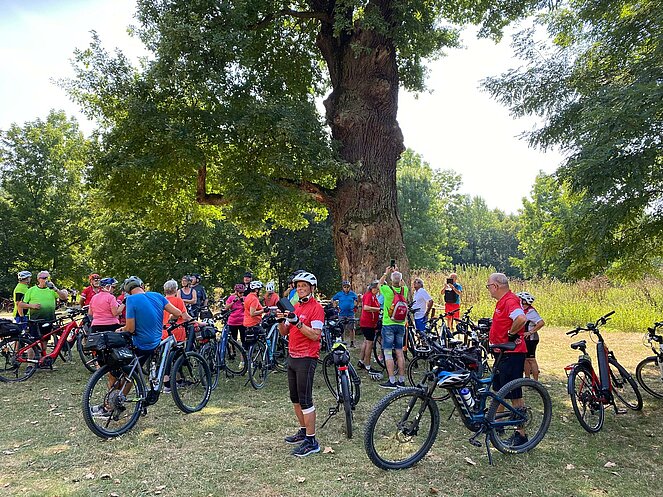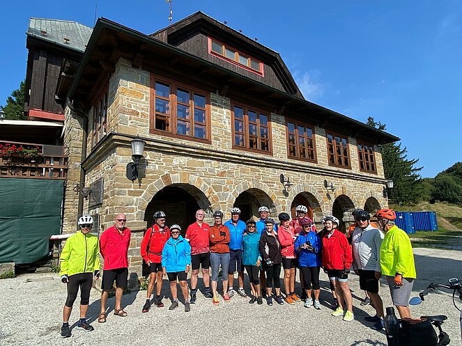 Der vierte Tag führte in die „Mährische Toskana“, einer Landschaft wie im Paradies. Wir passierten einsamen Schlösser und Kapellen, wunderschöne Weinberge und alte Dörfer. Gestärkt geht es nach der Mittagspause nach Bsenec, wo oben auf dem Burghügel, statt der ehemaligen Burgruine, die wieder errichtete Sebastianskapelle steht. Von hier ist ein schöner Ausblick auf die weißen Karpaten und die Pollauer Berge, bevor es wieder zurück ins Hotel ging. Der heutige Ausflug war wieder ungefähr 55 km.