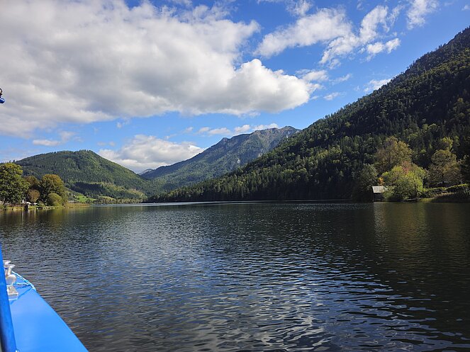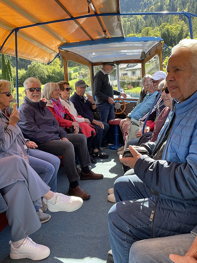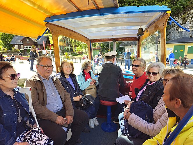 Der Bus brachte uns zu unserem ersten Ziel in Kienberg-Gaming, wo wir mit dem Ötscherland-Express nach Pfaffenschlag durch eine wildromantische Landschaft fuhren. Mit dem Bus ging es weiter zum Mittagessen nach Lunz am See in das Landhotel-Restaurant Zellerhof. Nach einem ausgezeichneten Mittagessen marschierten die Sportlichen bis zum Lunzer See, der Rest folgte etwas später mit dem Bus. Nach einer Schifffahrt am Lunzer See ging es wieder mit dem Bus weiter zu unserer letzten Station, einem Mostheurigen auf der Moststraße im Mostviertel bei Wallsee. Ein sehr schön restaurierter Hof, nette Wirtsleute und gute Bewirtung rundeten den wunderbaren Tag ab. War es zum Start mit dem Ötscherland-Express noch etwas nebelig, wurden wir aber sehr bald mit blauem Himmel und strahlendem Sonnenschein begrüßt. Es war ein sehr schöner und auch interessanter Ausflug und bester Stimmung der Teilnehmer.